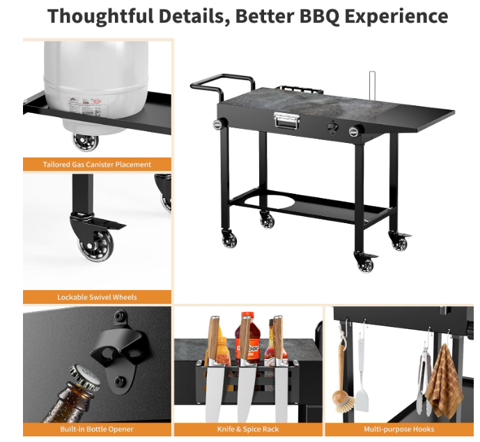 Smart Storage Grill Cart - Maximizes organization with 2-tier shelves, S-hooks, slide-out caddy, magnetic tools holder, paper towel rack and bottle opener. Reclaim your patio from clutter - no more lost tongs or messy stations.
