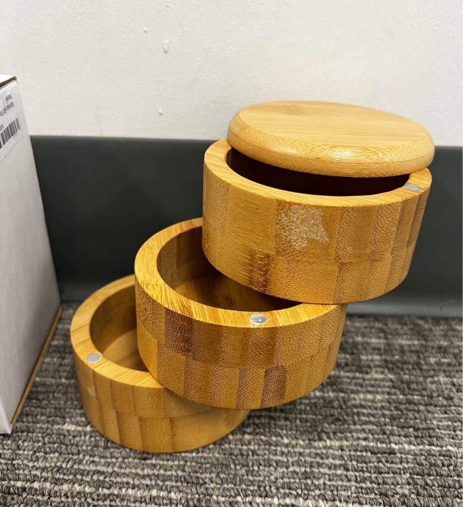 VenmoSeveral available. This is a bamboo 3 level salt or spice holder.
