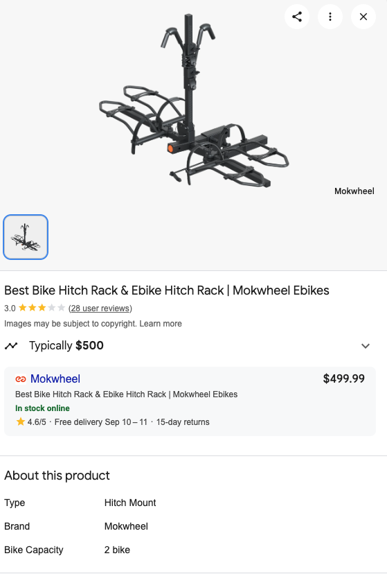 VenmoThis brand new Mokwheel e-bike hitch rack is heavy duty and easily accommodates two fat tire bikes. The rack is still in its unopened box. This rack sells for $499 on the Mokwheel site but can be yours for just $399. Why pay more for the exact bike rack? I don't know why you would, so don't. Great deal.