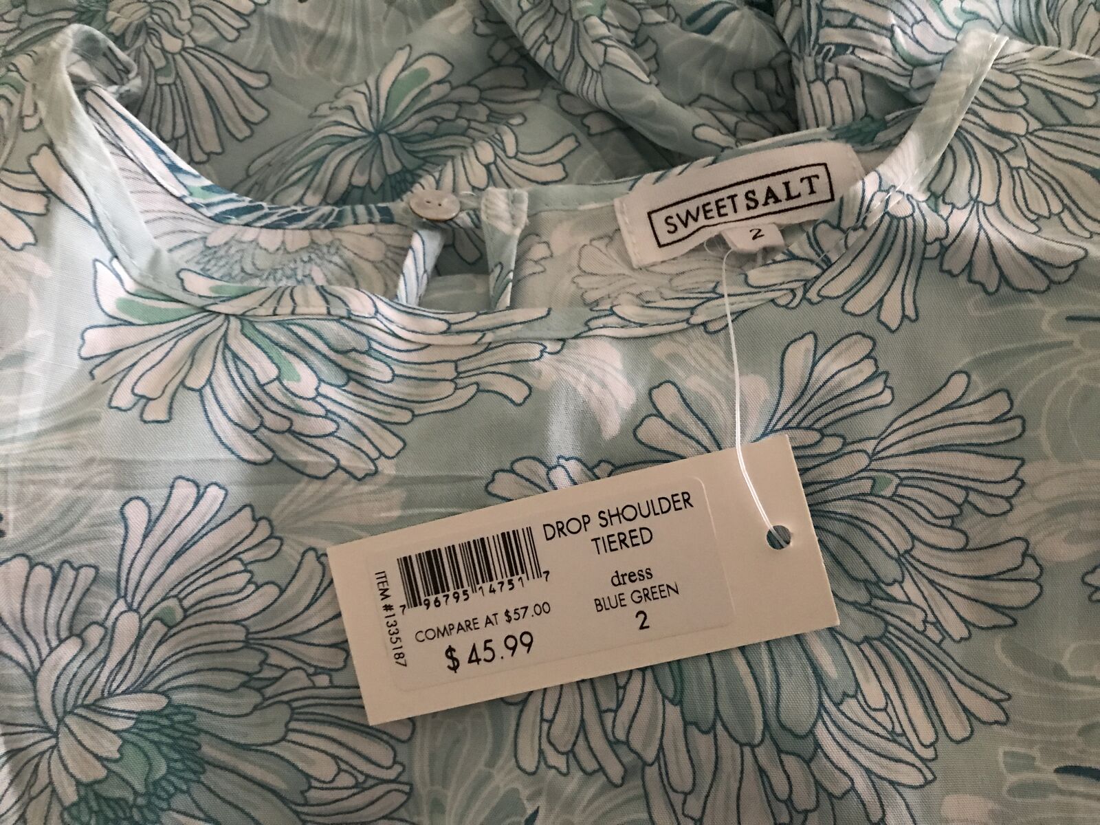 Easter Dress Beautiful Sweet Salt Drop Shoulder Tiered Dress Blue Green Size 2, New