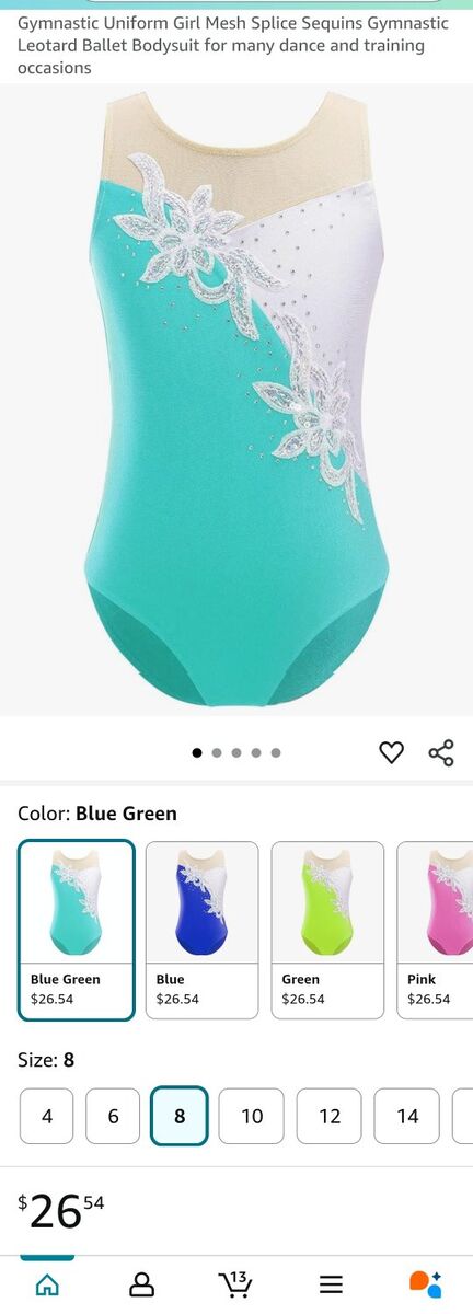 New. Never used. 7-8yo Material: Polyester, Nylon Patchwork designed leotard with glittering sequins and diamonds adorned, makes girls eye-catching on the stage. Perfect for gymnastic, yoga, ballet, modern dance, classic dance, skating, fancy skating, competition, stage performance, etc.