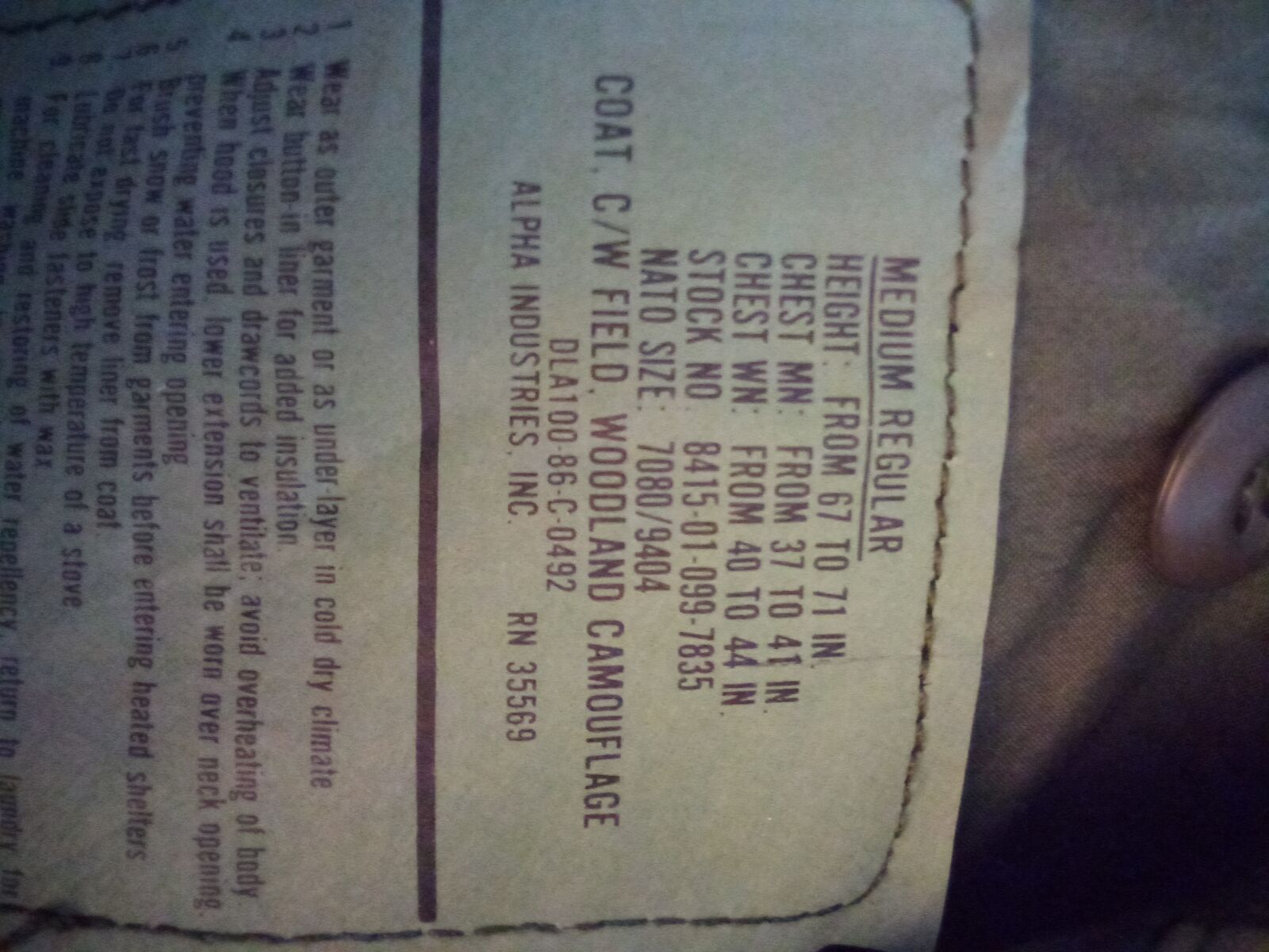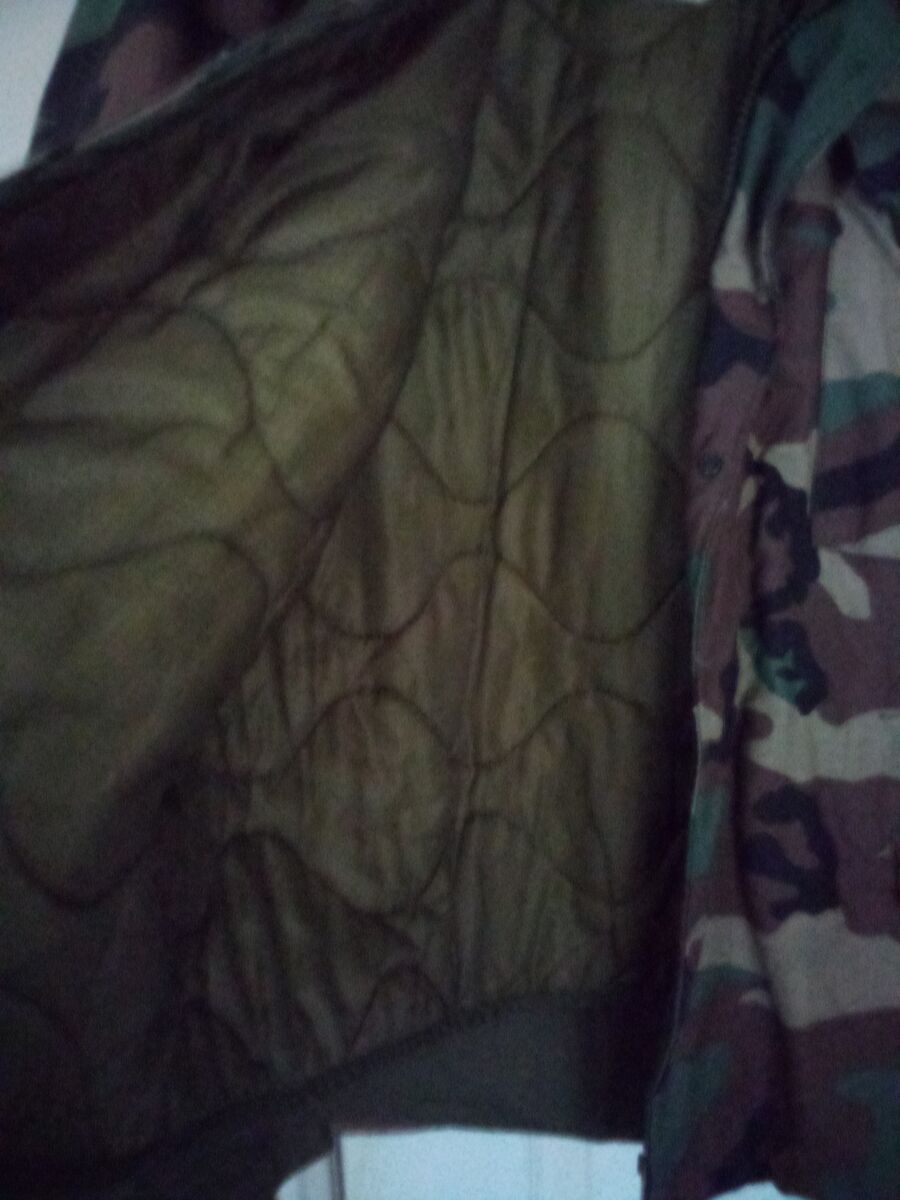 I have a Medium/Regular (measurements, 3rd photo) Army camo jacket...to include a cold weather liner (2nd photo)
