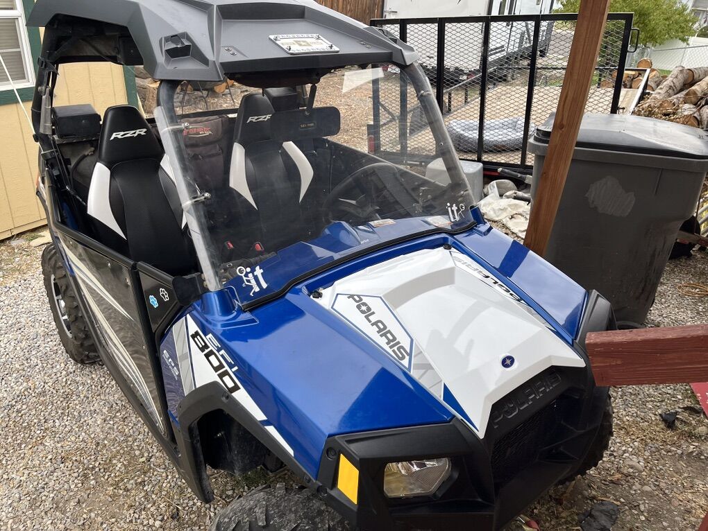 2014 Polaris RZR, 7111 miles. Secondary air filter system installed when new, machine has never used oil. Factory roof, full windshield with spare factory half windshield. Back window to minimize dust, Weather Tech floor mats, 3500 LB winch, less than 200 miles since oil and filter change, new spark plugs and new drive belt. Has roof and between seats storage bags, satellite antenna and portable satellite radio, 4 speakers but needs new amp. Everything works, listed price or best offer. Cash or bank check only, no trades. Or best offer. Replaced front tires 9/18/25, see new pictures