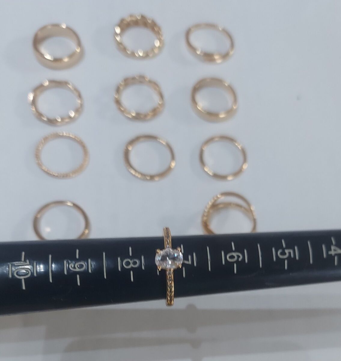 Most are size 7 1/2 (or between 7 and 8) with the exception of one ring - which is a 9 1/2.