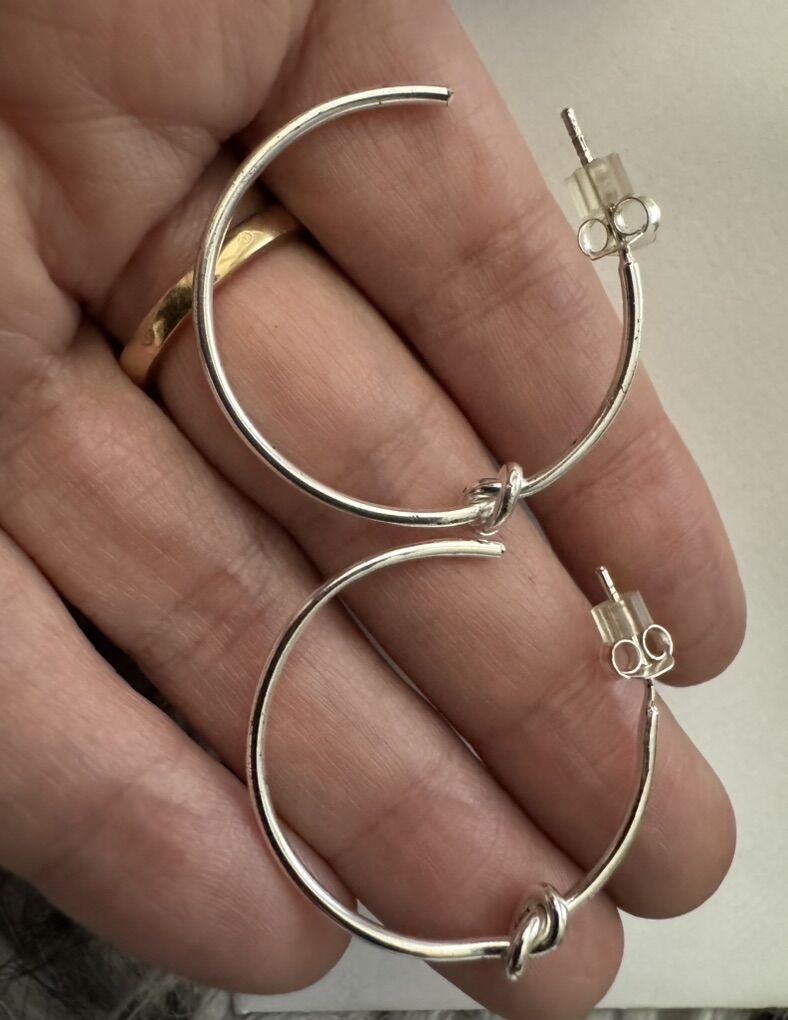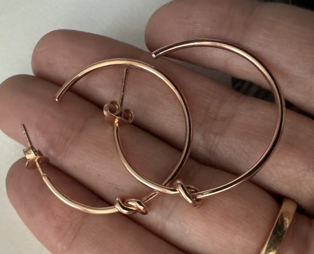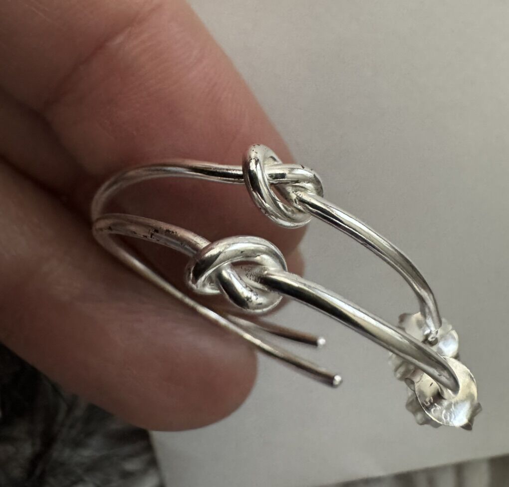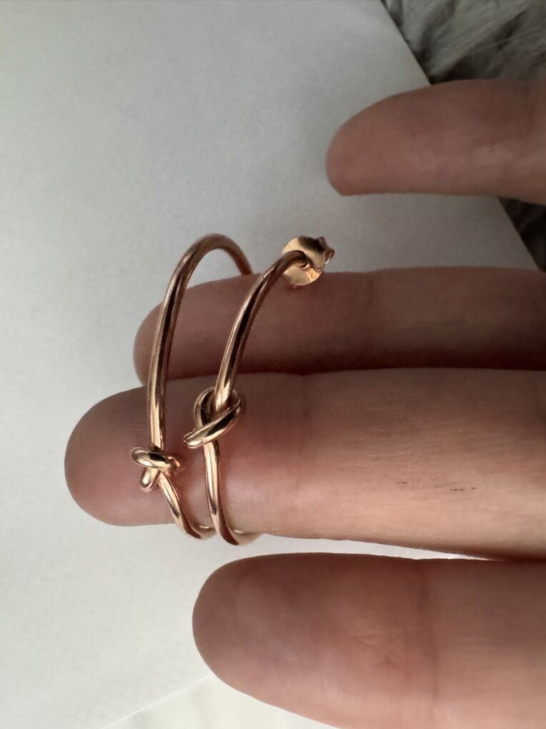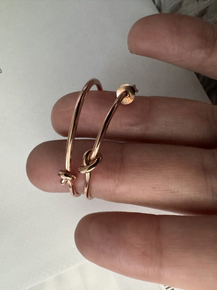 The earrings are in 18 k gold over sterling silver and each have beautiful knot . Rare vintage new old stock. Very comfortable and fashionable!! Retail was $749 very quality!