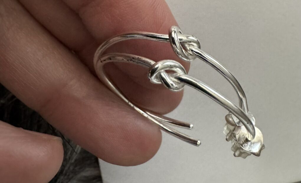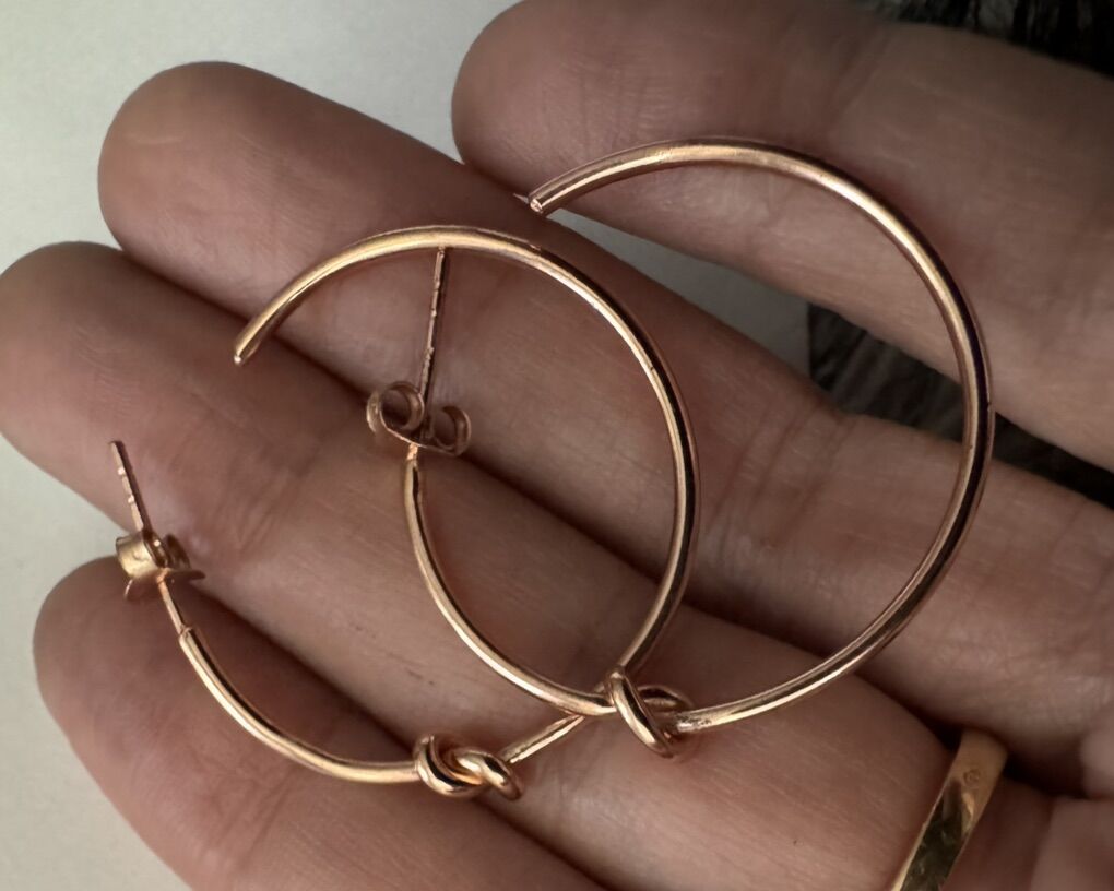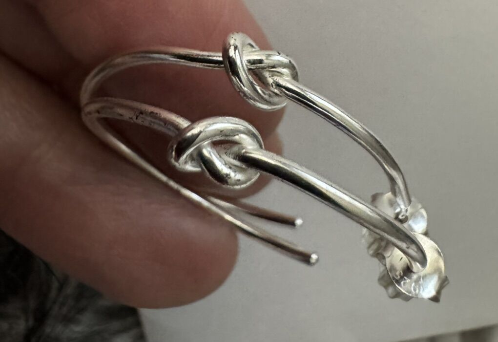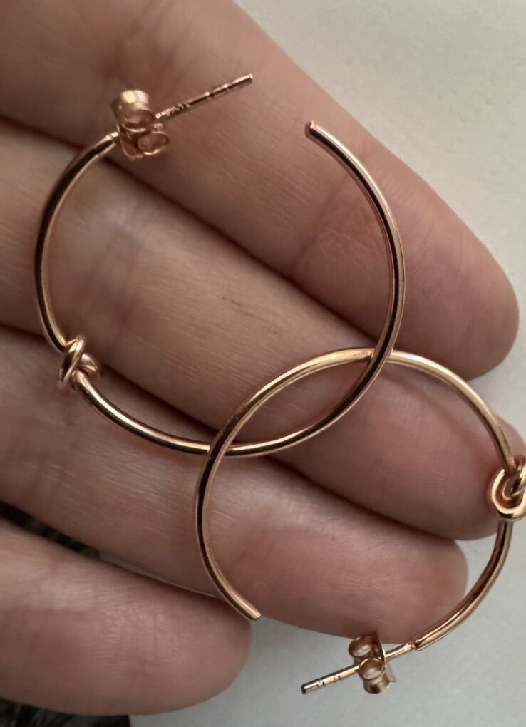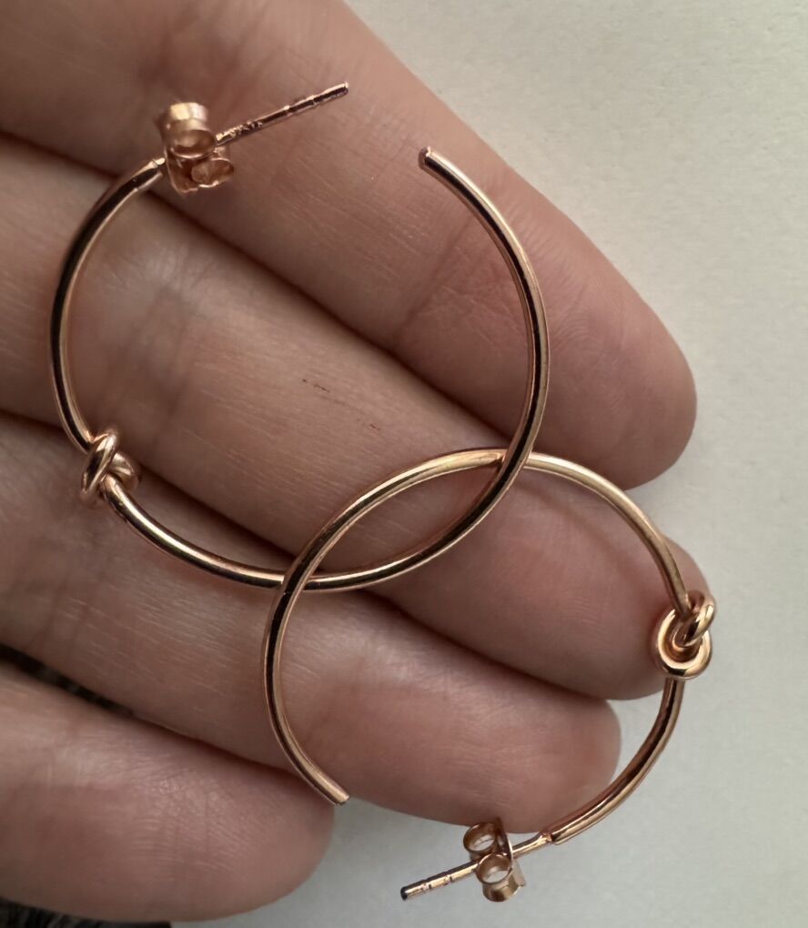 The earrings are in 18 k gold over sterling silver and each have beautiful knot . Rare vintage new old stock. Very comfortable and fashionable!! Retail was $749 very quality!