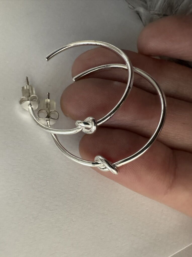 $749 GUCCI Knot Sterling Silver 18 K Gold Hoop Earrings Rare. Gucci Earrings