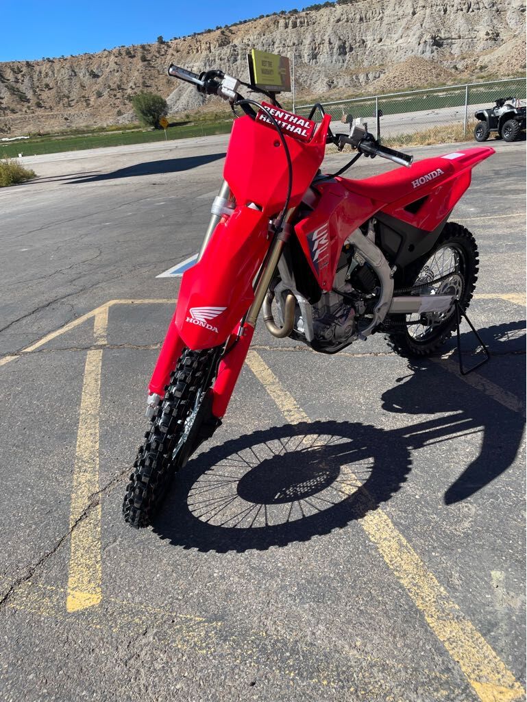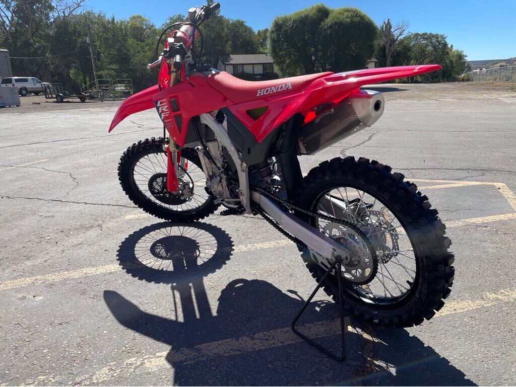 Special Financing as low as 3.99% or terms up to 60 Months Engine Type: Single-Cylinder Displacement: 27.4 cu. in. (449.8 cc) Bore and Stroke: Bore: 3.78 in. (96 mm); Stroke: 2.45 in. (62.1 mm) Cooling: Liquid Compression Ratio: 13.5:1 Fuel System: Gas Front Suspension: Inverted Fork Front Brakes: Disc Front Tire: Dunlop® Geomax MX33: 80/100-21 Rear Suspension: Twin Sided Swing Arm Rear Brakes: Disc Rear Tire: Dunlop® Geomax MX33: 120/80-19 Fuel Capacity: 1.7 gal. (6.4 L) Wheelbase: 58.3 in. (1480.8 mm) Ground Clearance: 13 in. (330.2 mm) Seat Height: 37.8 in. (960 mm) Trail: 4.5 in. (114 mm) Rake: 27.3 Transmission: Manual