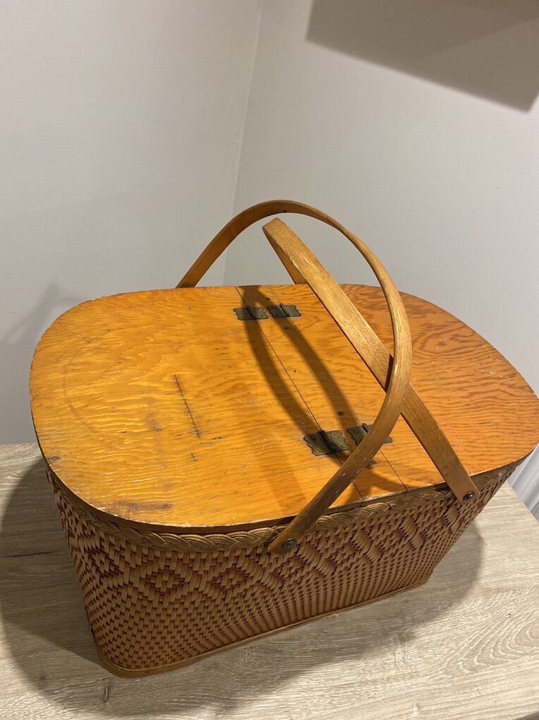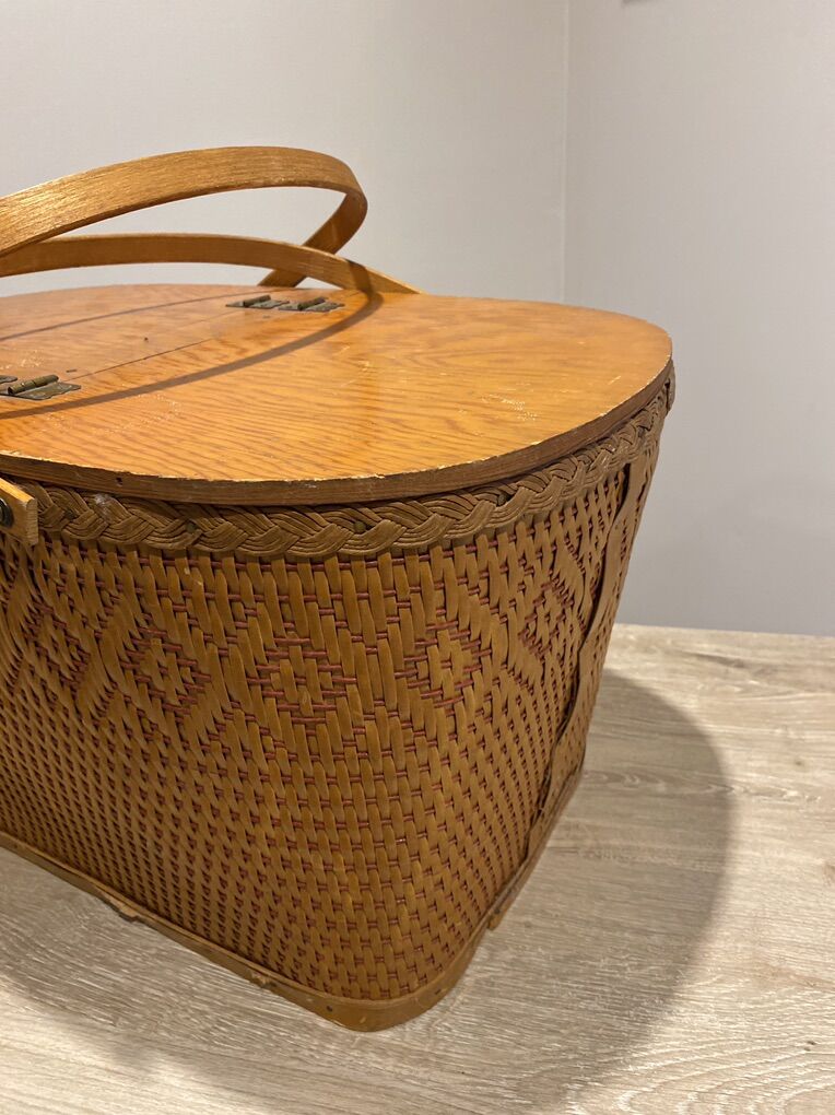 Vintage picnic basket in soft rattan Light weight spacious Storage box or just decoration Downsizing / Moving sale