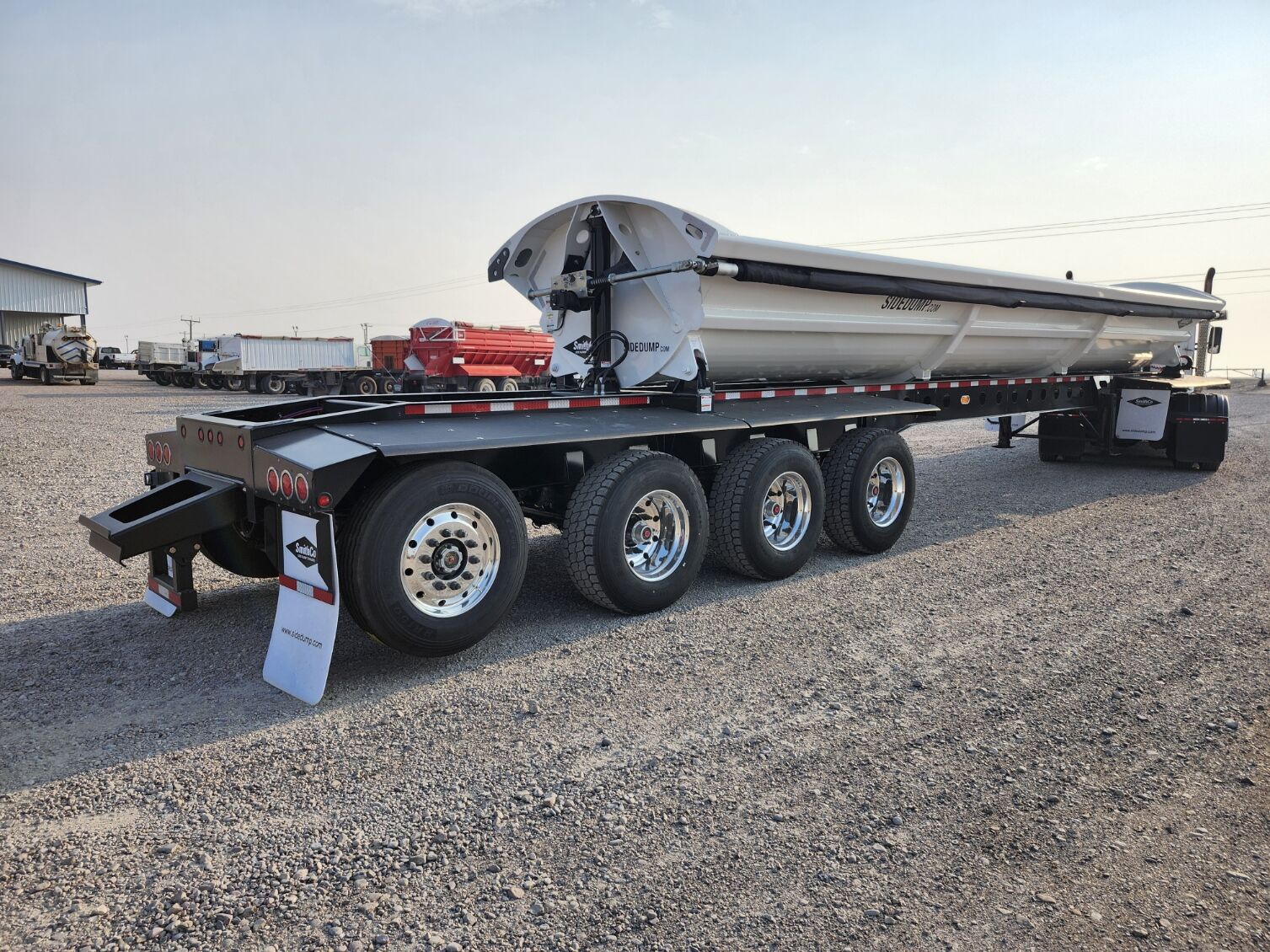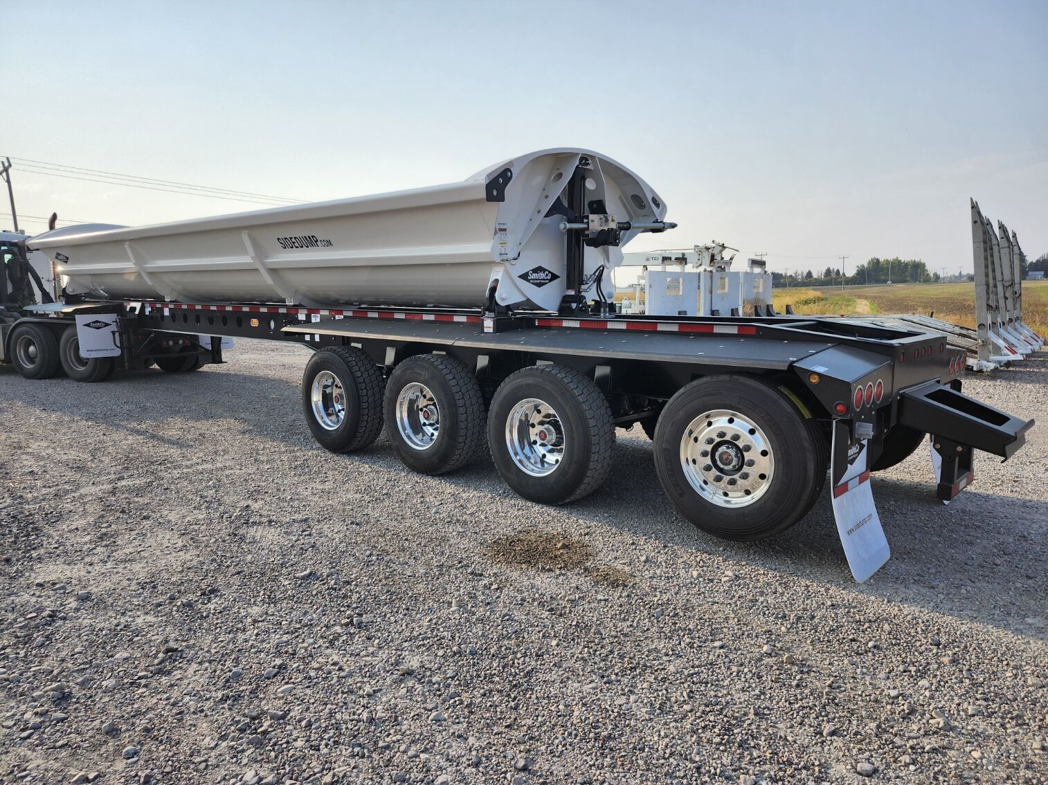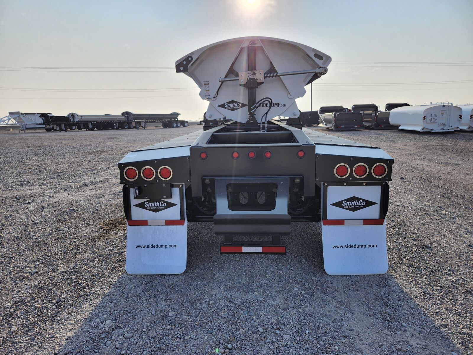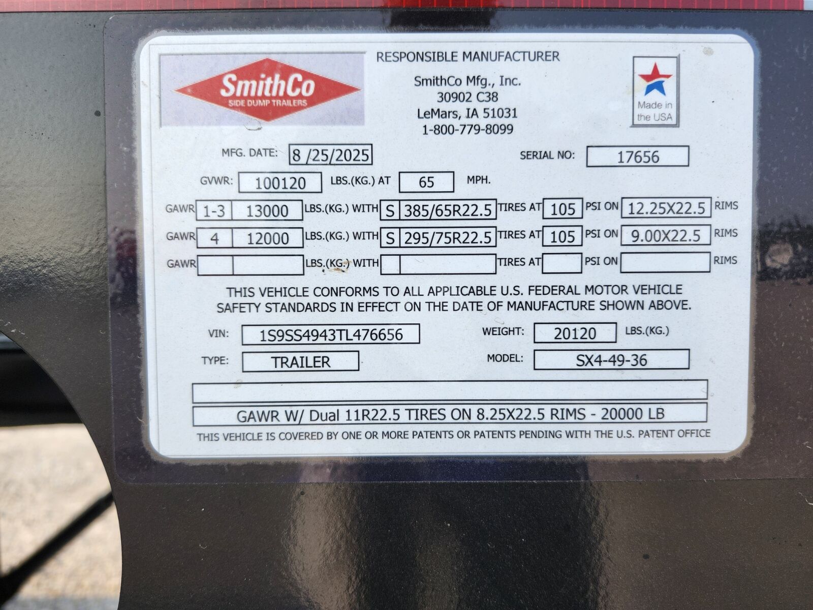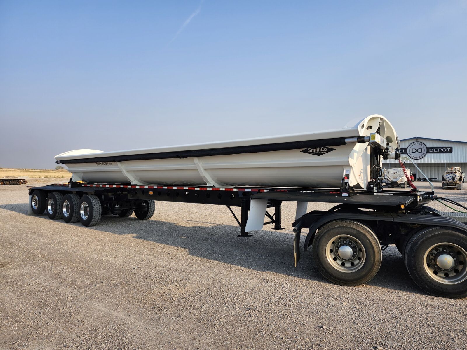 Made in the USA!! 49' trailer with 36' tub, 32 cubic yard capacity, 54" and 60" axle spacing, 18" Kingpin setting, 25K Axles, 2 speed landing gear, Electric roll over tarp, 1/4" AR450 hardened steel tub, Tarp lock-out switch, Push block, Hydraulic valve on trailer, Super single 385R22.5 tires, Liftable 1st axle, Liftable/Steerable 4th axle, Requires truck wet kit with minimum 10 gal hydraulic reservoir and 25-30 GPM hydraulic pump, In stock!! (Price + FET and sales tax) SMITHCO SX4-49-36