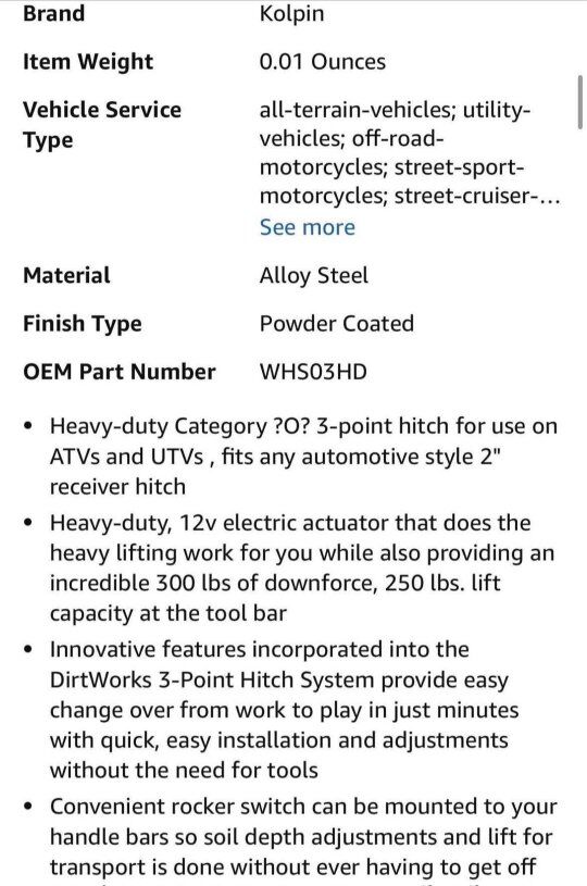 Kolpin Heavy-Duty 3-Point Hitch System - WHS03HD,black (open box item)