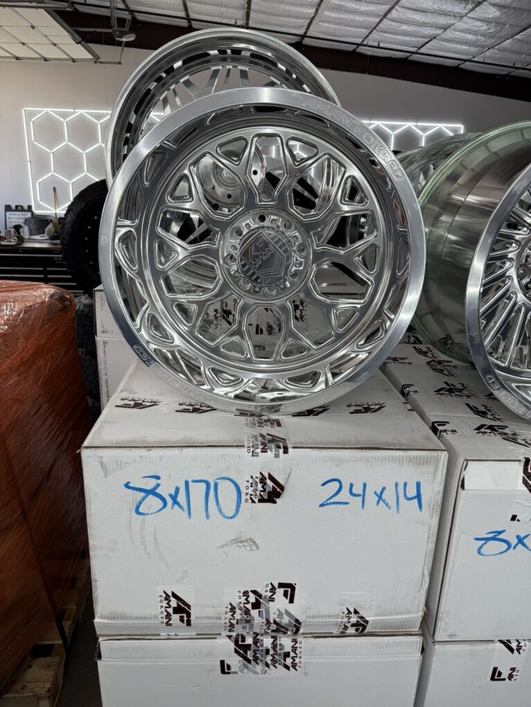 ZelleBRAND NEW IN THE BOX 24x14 Amani forged wheels Model “mira” -76 offset Polished backs