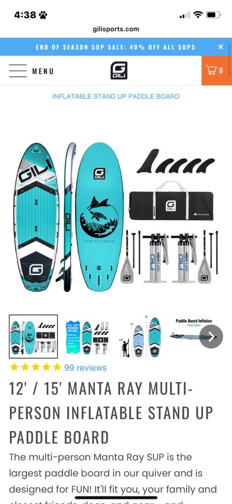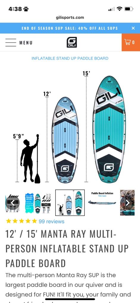 VenmoUsed 4 times. This is a giant paddle board made by Gili sports. It’s extremely durable and well taken care of. We did a lot of research before buying this giant paddle board and we went with gili because they have very well made products. There is an option to buy a motor for these online, which would be amazing. We never did because we ended up buying a boat.
