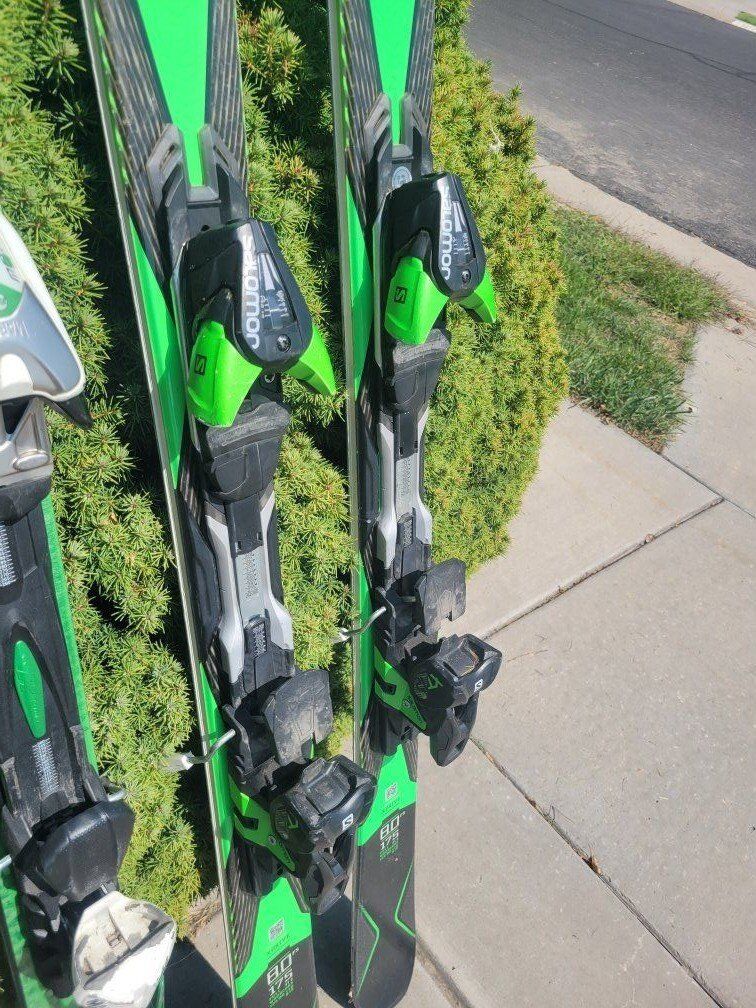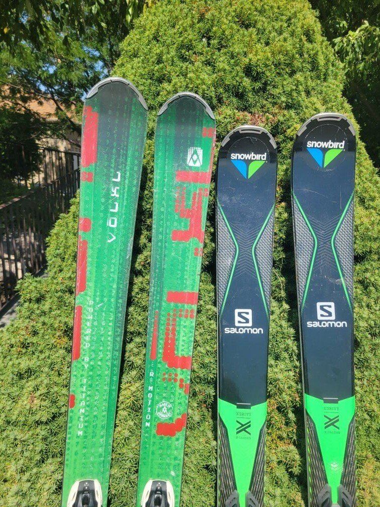 On the right 175cm Salomon X drive x chasis full wood core with very adjustable bindings. $180