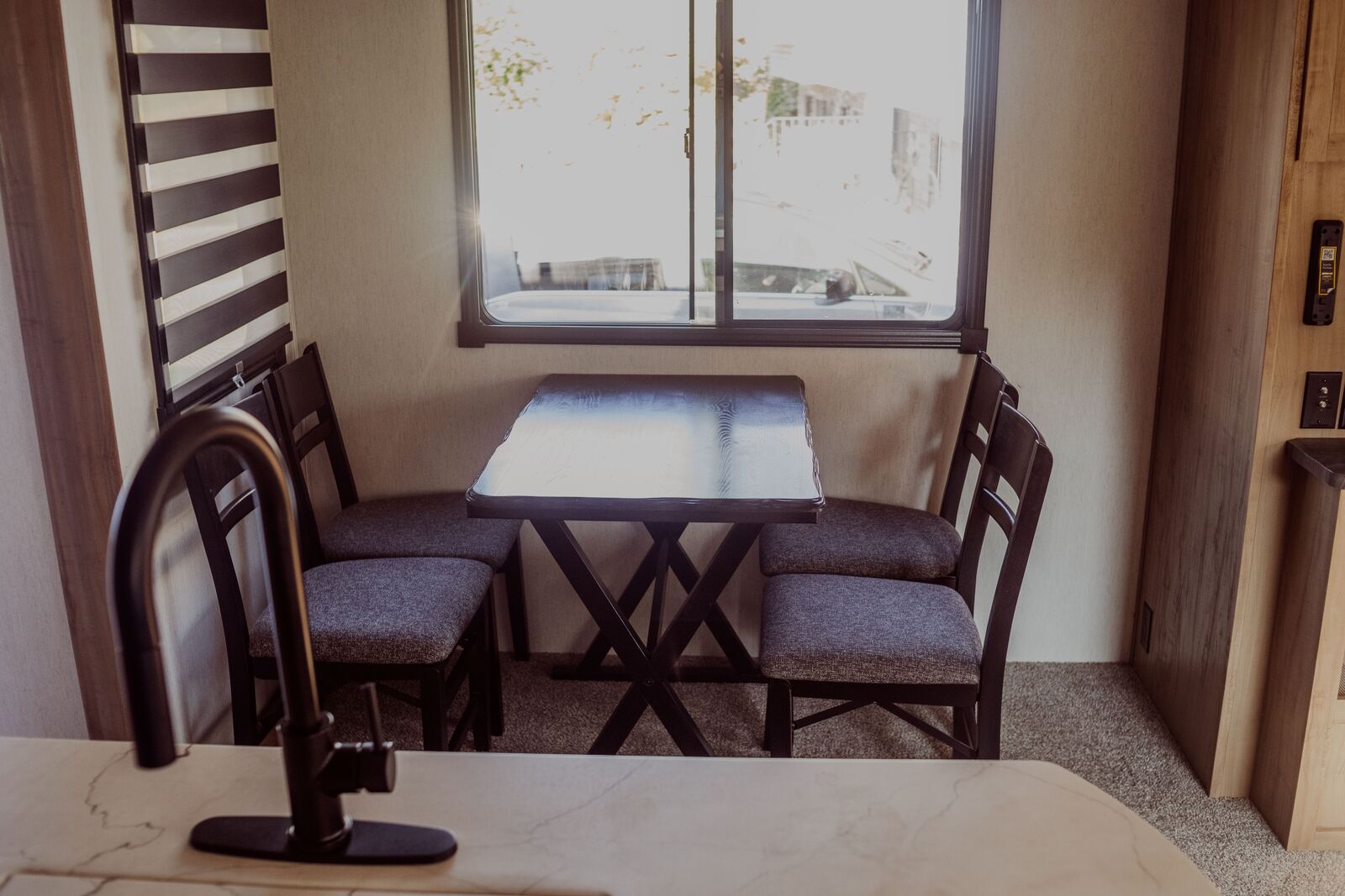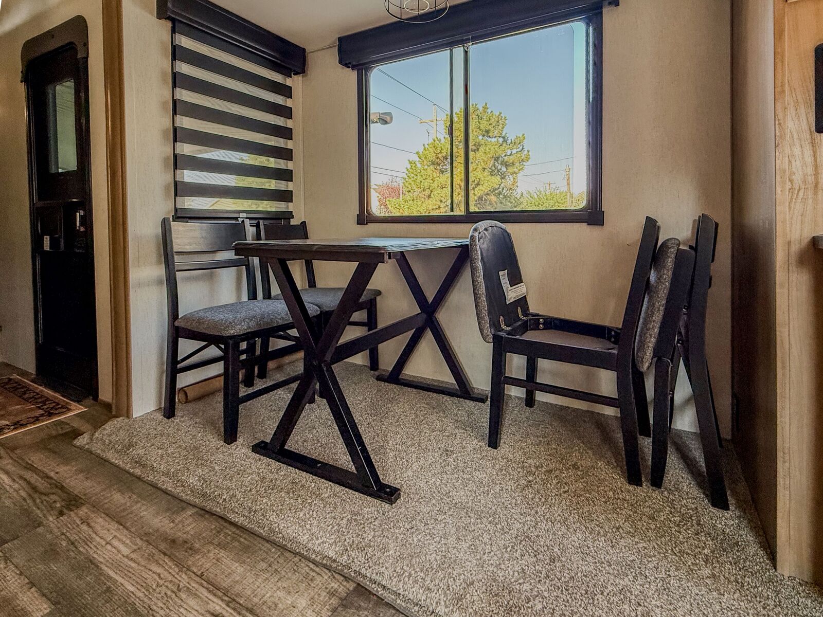 It has all the amenities needed for a home away from home. It can sleep 8 or 9 people!