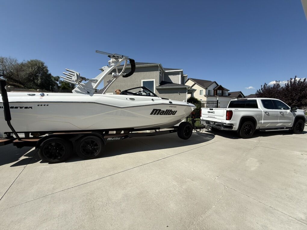 Absolutely pristine 2024 Malibu 22 LSV wakesurf boat, meticulously maintained with only 63 hours and THREE years remaining on its five-year warranty. This like-new beauty is perfectly broken in per manufacturer specifications, boasting a sleek white exterior paired with a luxurious sepia/ saddle brown cool touch interior. Designed for ultimate performance and comfort, this boat is loaded with premium features, including three outlet heater vents, a power seat, dual touchscreen displays, a hot water shower, and a robust internal ballast system enhanced by two additional fat sack ballasts. The Power Wedge III and surf gates deliver unparalleled wave customization, making it a dream for wakesurfing enthusiasts. This Malibu 22 LSV comes equipped with an upgraded trailer featuring stylish wheels, tires, and convenient compact steps on the front for easy access. Every detail of this boat screams quality, from its spotless condition to the top-tier upgrades that elevate it beyond standard Malibu specifications. Whether you’re carving perfect waves or cruising in style, this boat offers an unmatched on-water experience. Don’t miss your chance to own a virtually new, fully loaded Malibu 22 LSV that’s ready to make every lake day unforgettable. Serious inquiries only— Deal needs to be finalized at Dealer for tax purposes