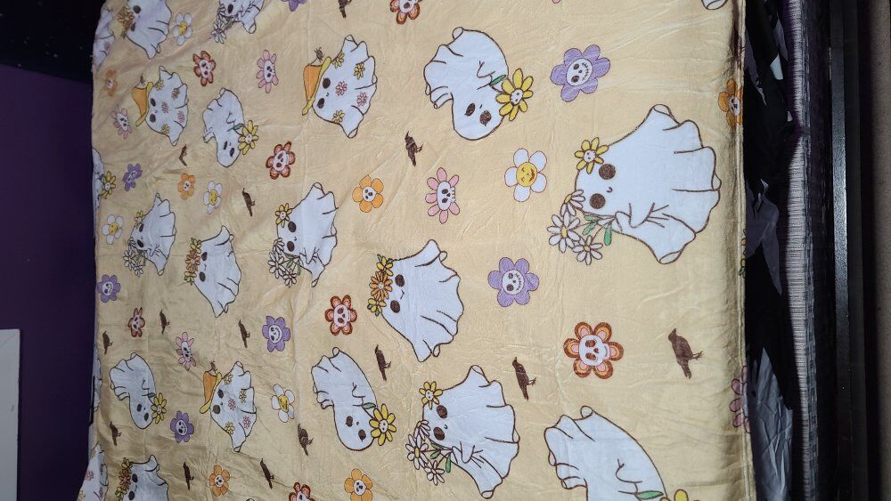 Assorted Halloween Blankets, all vary in size. yellow is the smallest, could be a good lap blanket.