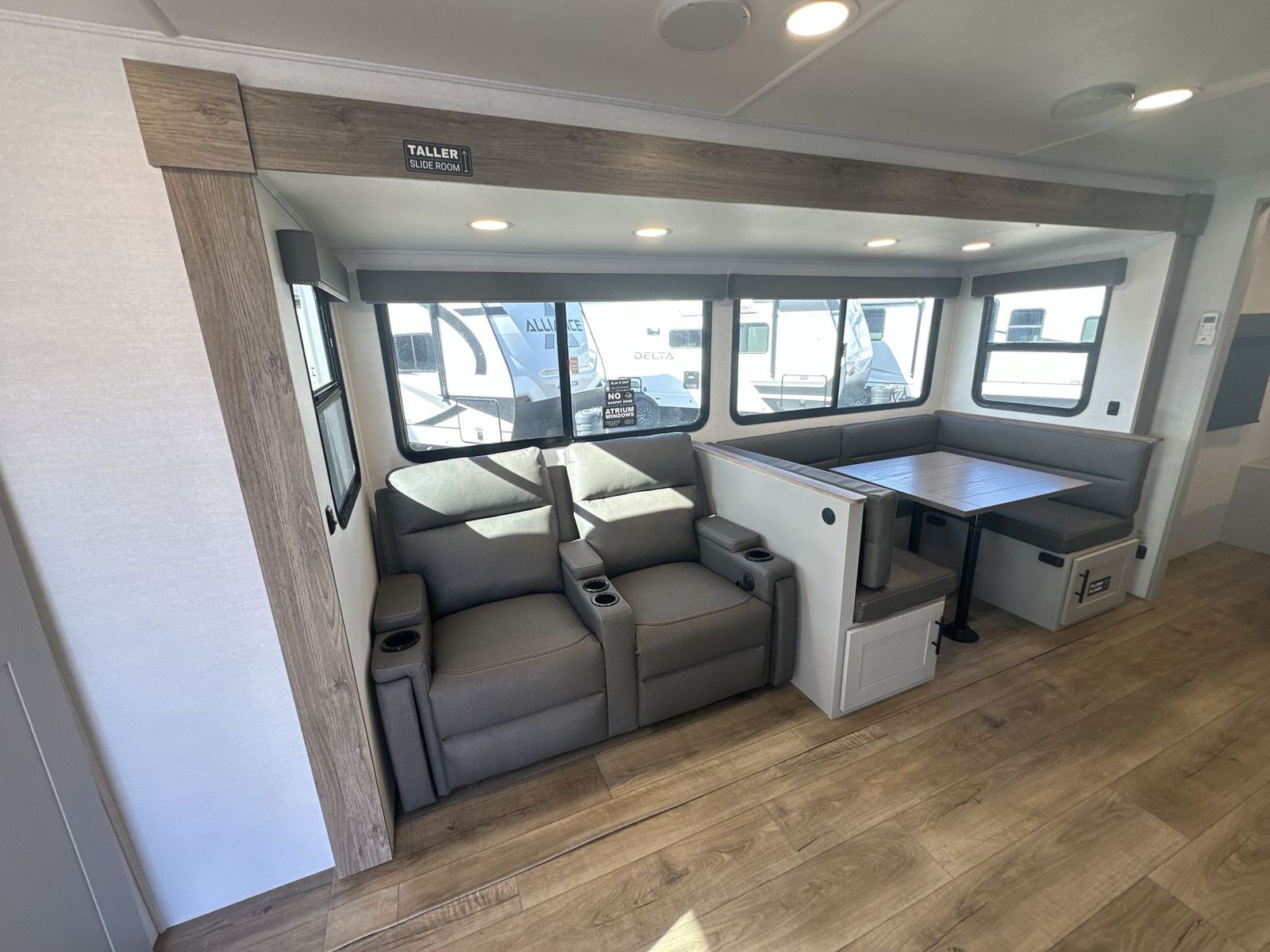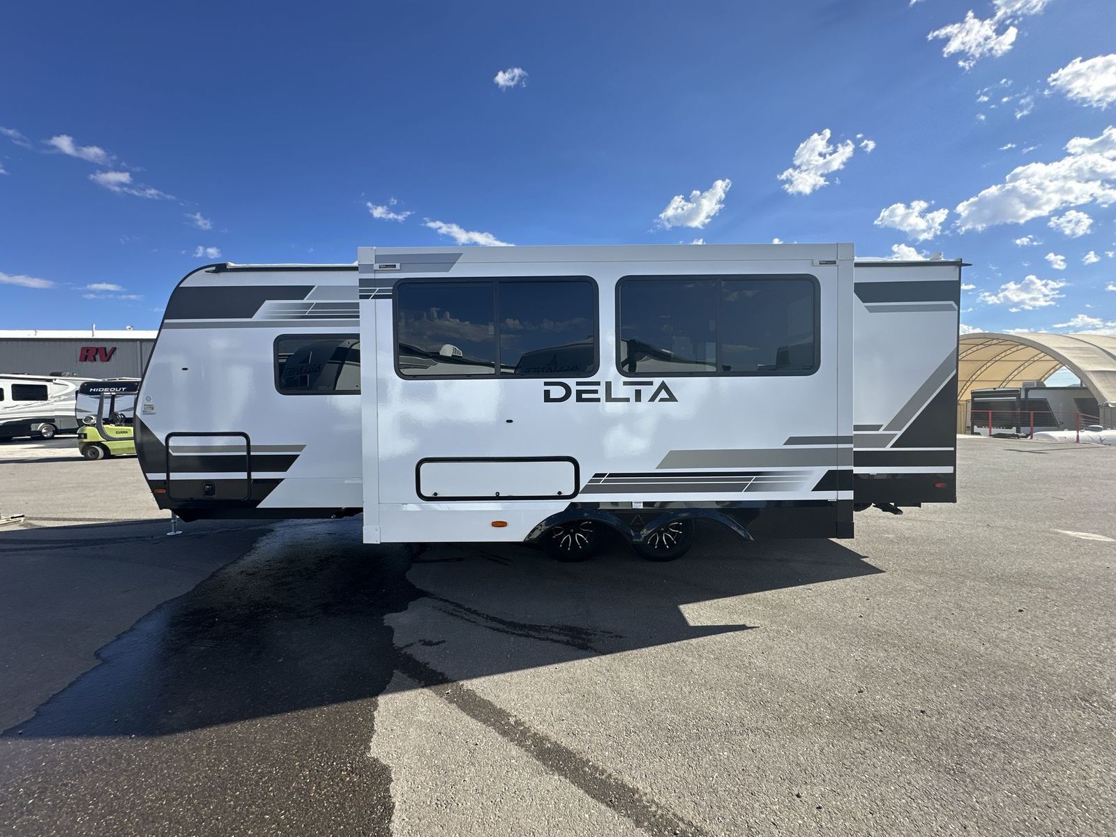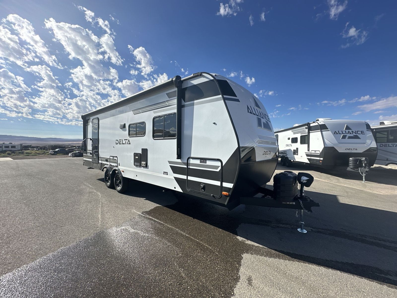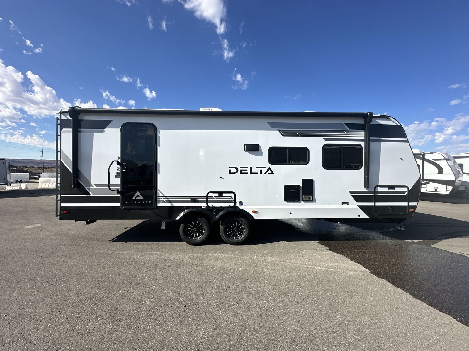 Alliance RV Delta travel trailer 262RB highlights: Full Rear Bath U-Shaped Dinette Queen Bed Outdoor Griddle You will love all of your adventures with thisDelta travel trailer in tow! This unit is perfect for a couple or even a family of four or six with a queen bed in the front private bedroom, and also using the sofa and U-shaped dinette once converted for more sleeping space. The U-shaped dinette is great for gathering for meals, a board game or game of cards, and the sofa is directly opposite a 40" HDTV which makes viewing enjoyable.You can easily prepare all of your favorite meals and snacks with the kitchen amenities provided inside. A three burner range allows you to easily cook indoors, or you can cook outside using the outdoor griddle/grill if you like. There is a 10 cu. ft. 12V refrigerator to keep all of your perishables and drinks nice and cold, plus a large sink for dishes and cleaning up, and a convenient pull-out trash can and flip-up counter extension as well. You will also appreciate the full rear bath featuring a 30" x 36" shower, toilet, vanity with sink, and linen cabinet for your towels and toiletries. Form and function works together with every one of these Alliance RV Delta travel trailers! They are built with a walk-on roof with a seamless PVC roof covering, Mylar reinforced exterior seals, and a heated and enclosed underbelly to protect your unit in all seasons. The commercial grade vinyl flooring will be easy to clean and the oversized atrium windows throughout let in plenty of natural sunlight. With 62 cu. ft. of drop frame pass-through storage, you can bring along all of your essential camping gear plus it has USB charging for more convenience. There are many at home interior conveniences including a Bluetooth speaker, USB charging throughout, and even a pull-out kitchen trash can. Come find your favorite model today!