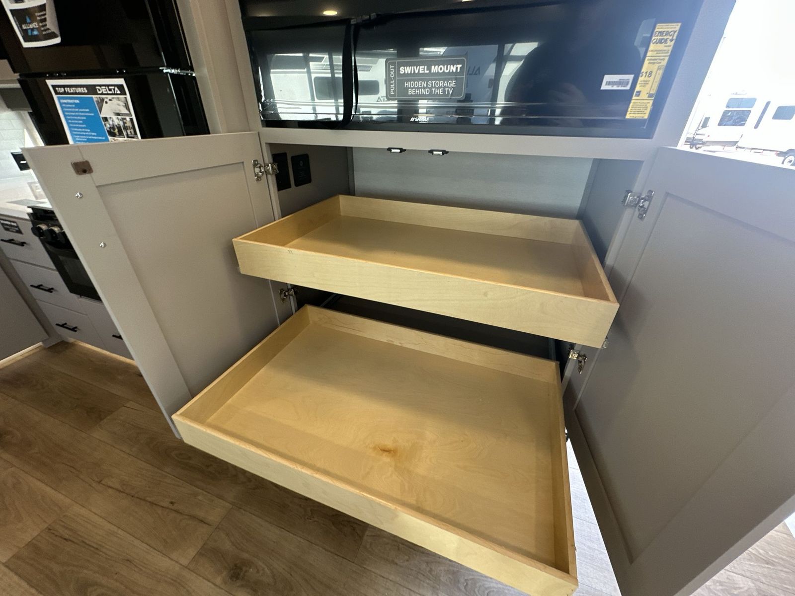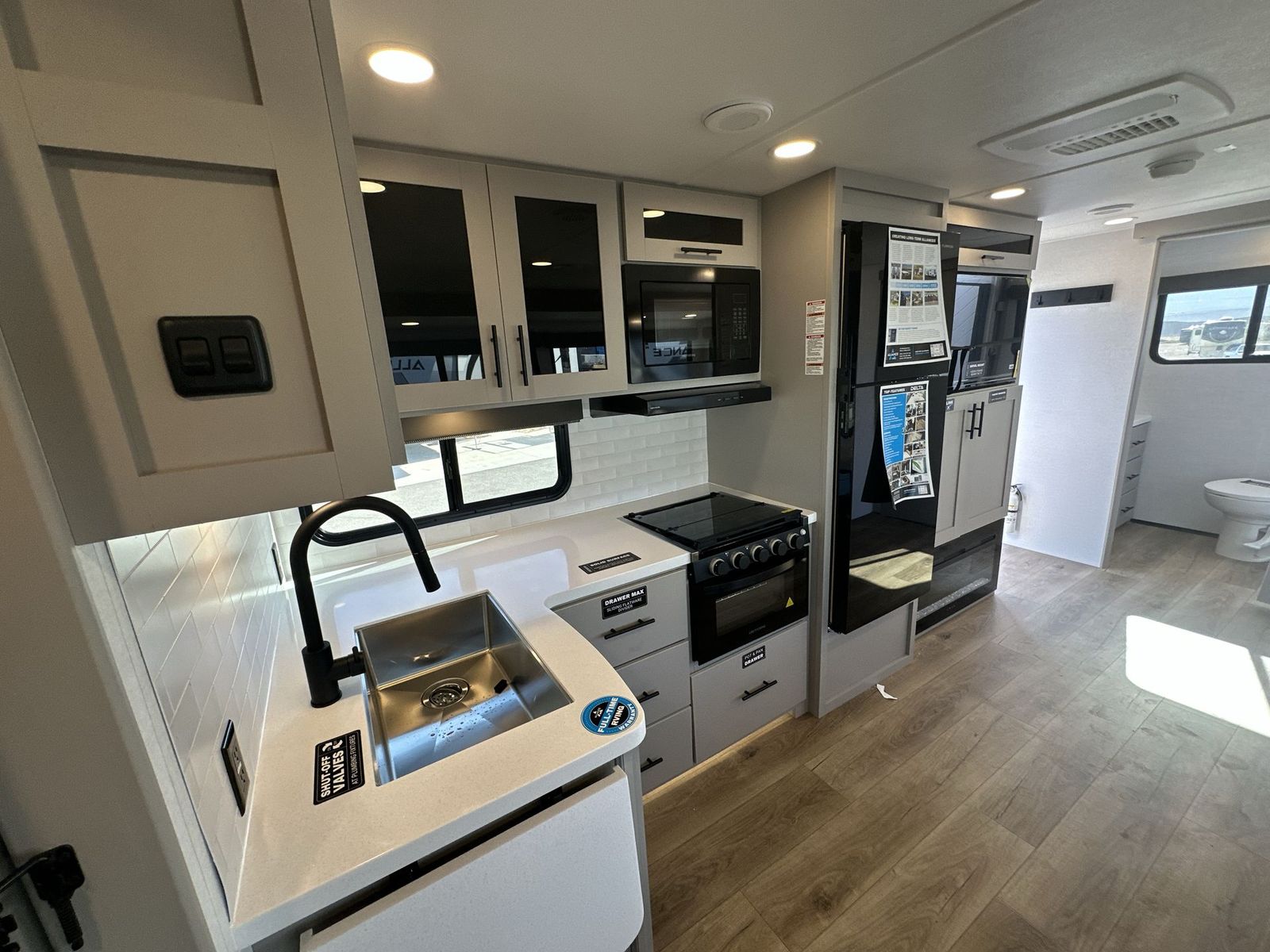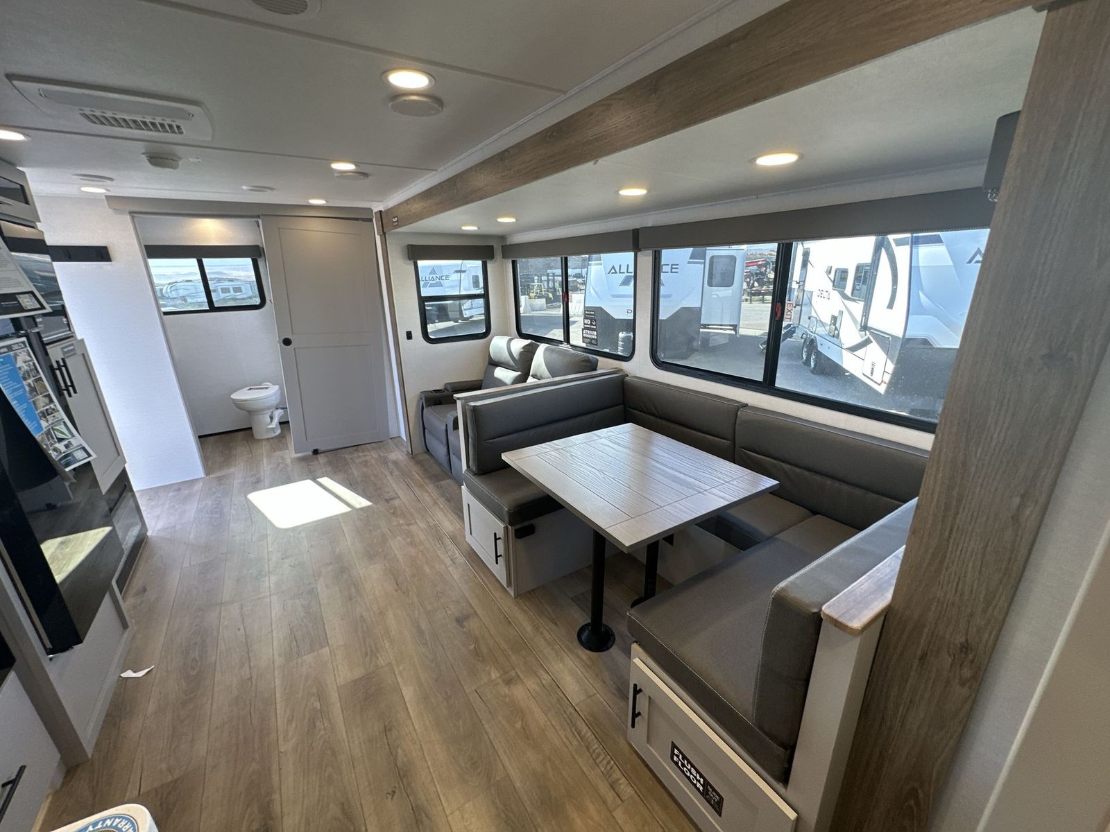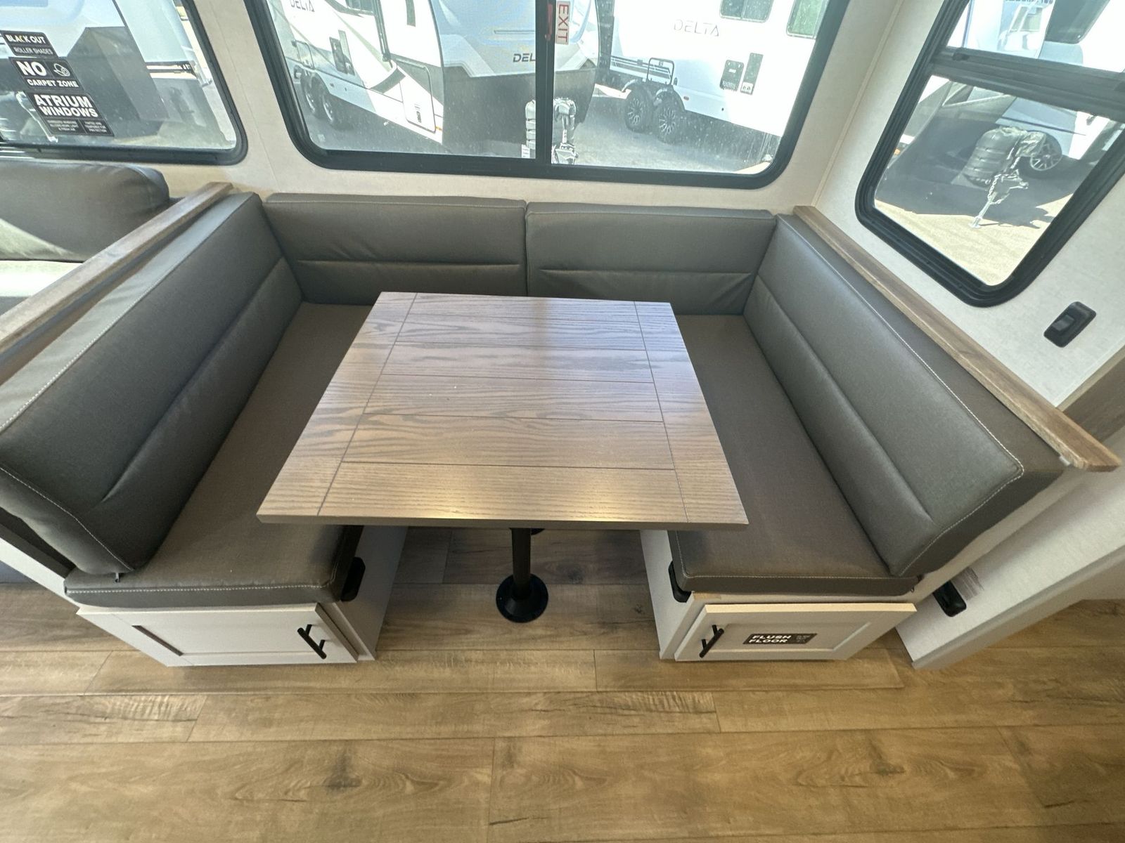 Alliance RV Delta travel trailer 262RB highlights: Full Rear Bath U-Shaped Dinette Queen Bed Outdoor Griddle You will love all of your adventures with thisDelta travel trailer in tow! This unit is perfect for a couple or even a family of four or six with a queen bed in the front private bedroom, and also using the sofa and U-shaped dinette once converted for more sleeping space. The U-shaped dinette is great for gathering for meals, a board game or game of cards, and the sofa is directly opposite a 40" HDTV which makes viewing enjoyable.You can easily prepare all of your favorite meals and snacks with the kitchen amenities provided inside. A three burner range allows you to easily cook indoors, or you can cook outside using the outdoor griddle/grill if you like. There is a 10 cu. ft. 12V refrigerator to keep all of your perishables and drinks nice and cold, plus a large sink for dishes and cleaning up, and a convenient pull-out trash can and flip-up counter extension as well. You will also appreciate the full rear bath featuring a 30" x 36" shower, toilet, vanity with sink, and linen cabinet for your towels and toiletries. Form and function works together with every one of these Alliance RV Delta travel trailers! They are built with a walk-on roof with a seamless PVC roof covering, Mylar reinforced exterior seals, and a heated and enclosed underbelly to protect your unit in all seasons. The commercial grade vinyl flooring will be easy to clean and the oversized atrium windows throughout let in plenty of natural sunlight. With 62 cu. ft. of drop frame pass-through storage, you can bring along all of your essential camping gear plus it has USB charging for more convenience. There are many at home interior conveniences including a Bluetooth speaker, USB charging throughout, and even a pull-out kitchen trash can. Come find your favorite model today!