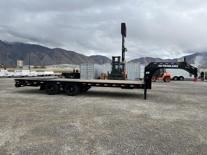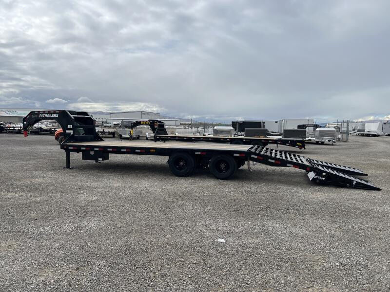 Stock Number: PJ6194 Trailer Includes Following Options: 5' Dovetail w/ Flip Over Monster Ramps Dual Front Hydraulic Jacks Standard Features: 25,000 lbs. GVWR 10,000 lb. x (2) G.A.W.R. 3/8" Grade 70 Safety Chain w/Clevis hook (2 each) Spring Loaded Drop Leg Jacks (10,000 lb.) 2 - 10,000# Axles (Dexter) Electric Axle 5-Leaf Slipper Spring Suspension Dual 16" Black Wheels (8 on 6.5" Bolt Pattern) ST235/80R16 Radial Tires (3,080 lbs.) 3-5/8" x 1-1/2" (ID) Stake Pockets Diamond Plate Low-Pro Fenders 12" x 19 lb. I-beam Tongue 3" Channel Crossmembers on 16" Centers 2" Treated Pine Lumber Deck 102" Wide Deck DOT Approved Flushmount Lifetime LED Lights All-Weather Wiring Harness (7-way RV) Powdercoat 5 year Dexter Axle Warranty WASATCH TRAILER SALES - LARGEST TRAILER SELECTION IN UTAH Springville: (801) 528-1581 | 1180 S 2000 W, Springville UT, 84663
