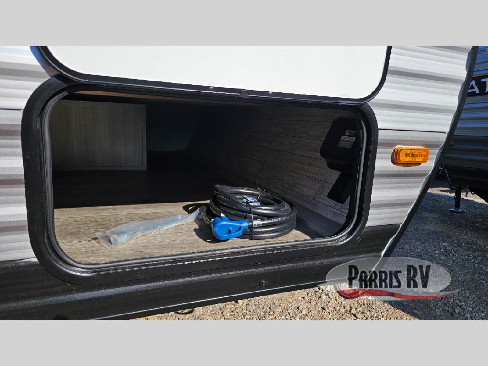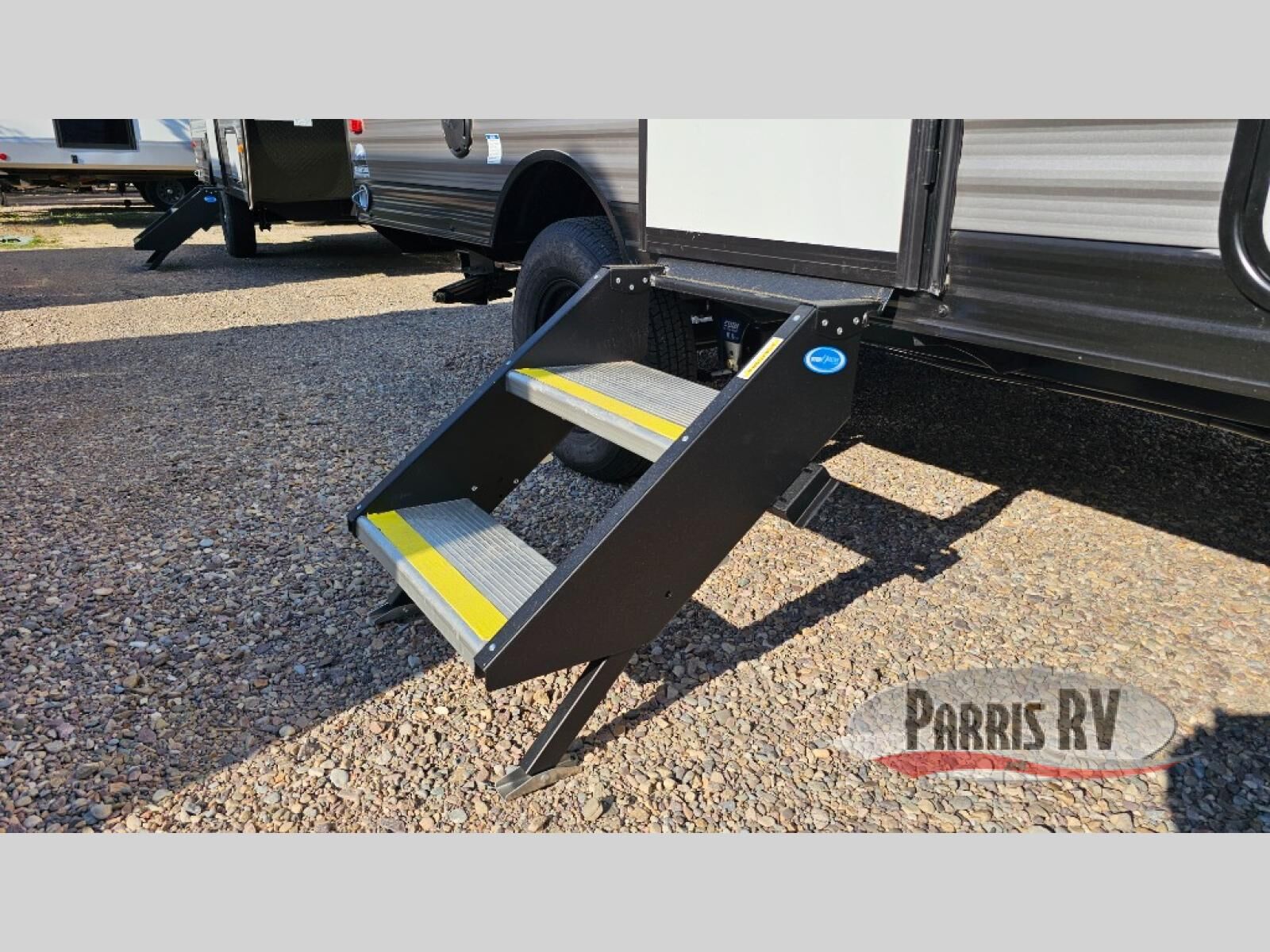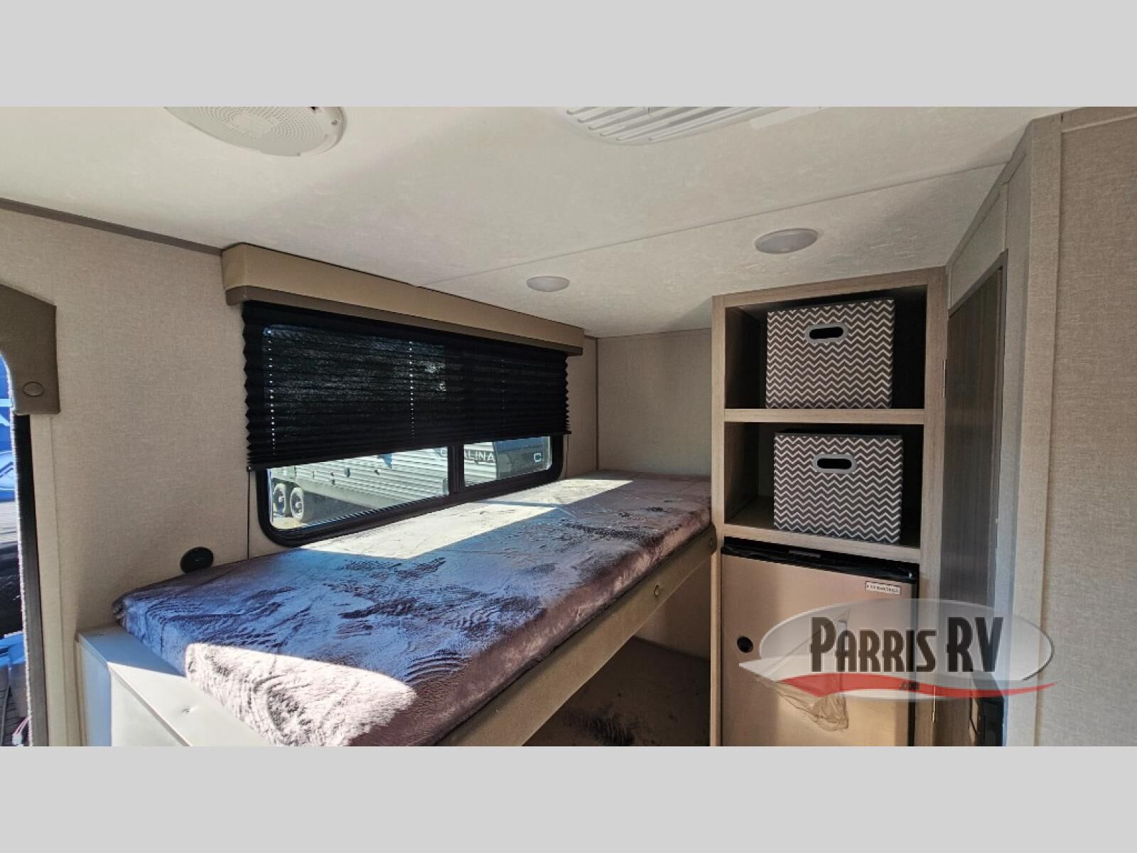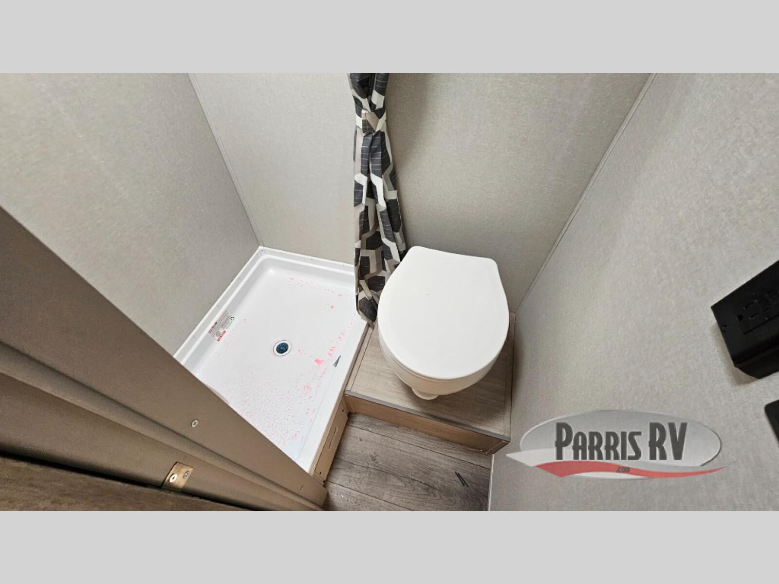 Lightweight camping is easier than you think with this travel trailer in tow! The front 54" x 74" queen bed will provide a great night's rest each night, while the little ones or your guests take the bunk beds. There is a handy shelf above the front bed for your belongings plus additional bedroom storage. A private bath includes a 24" x 32" shower and a toilet with a mirror behind it so you can freshen up each day. You'll also find a two burner cooktop and microwave oven to make meals each day plus a 3.3 cu. ft. 12V refrigerator for food storage!