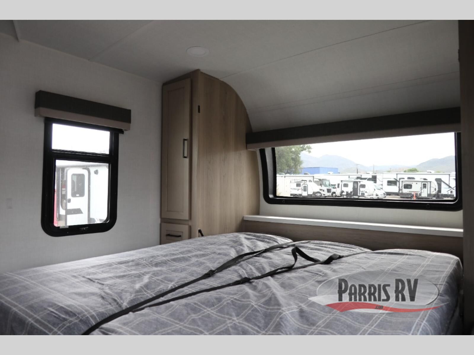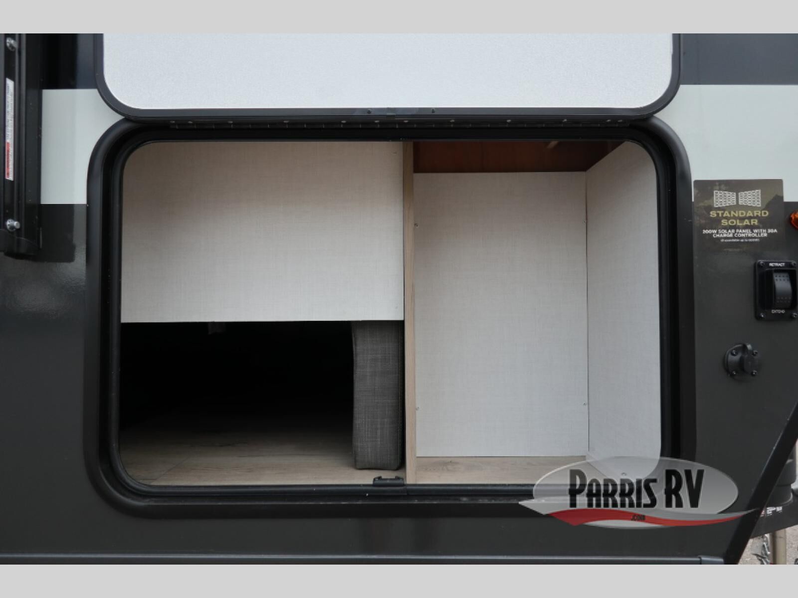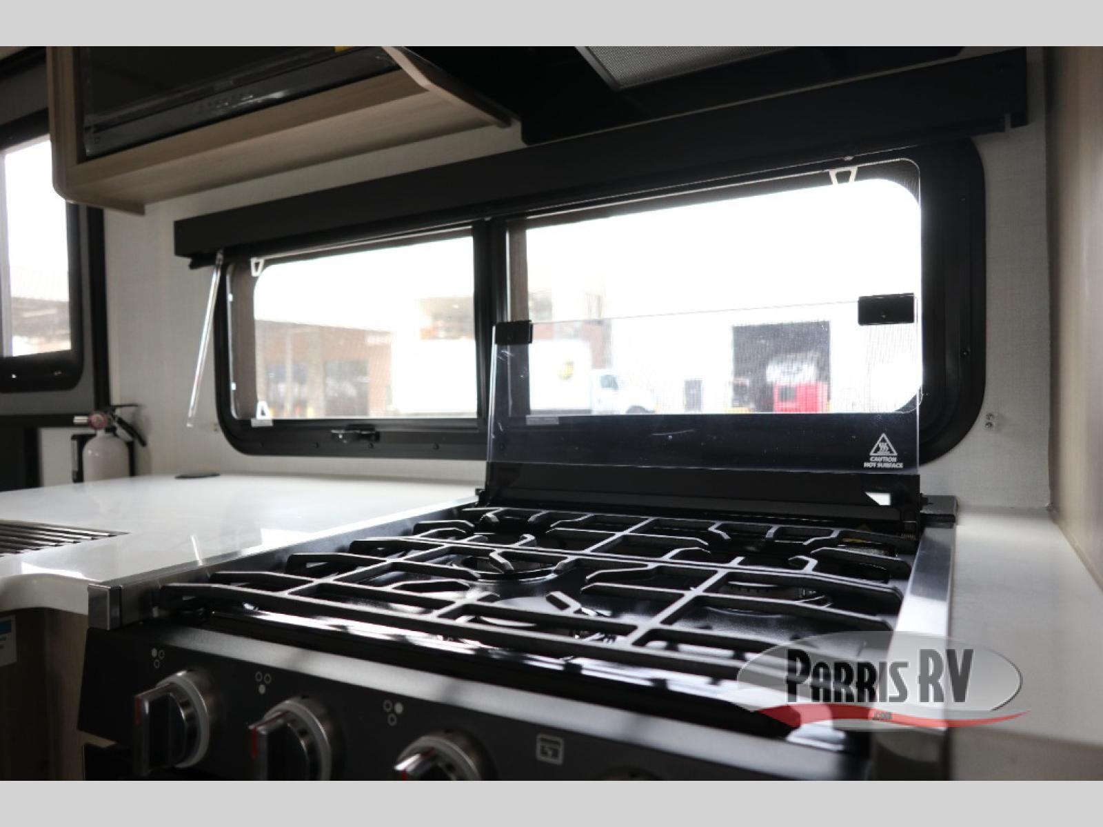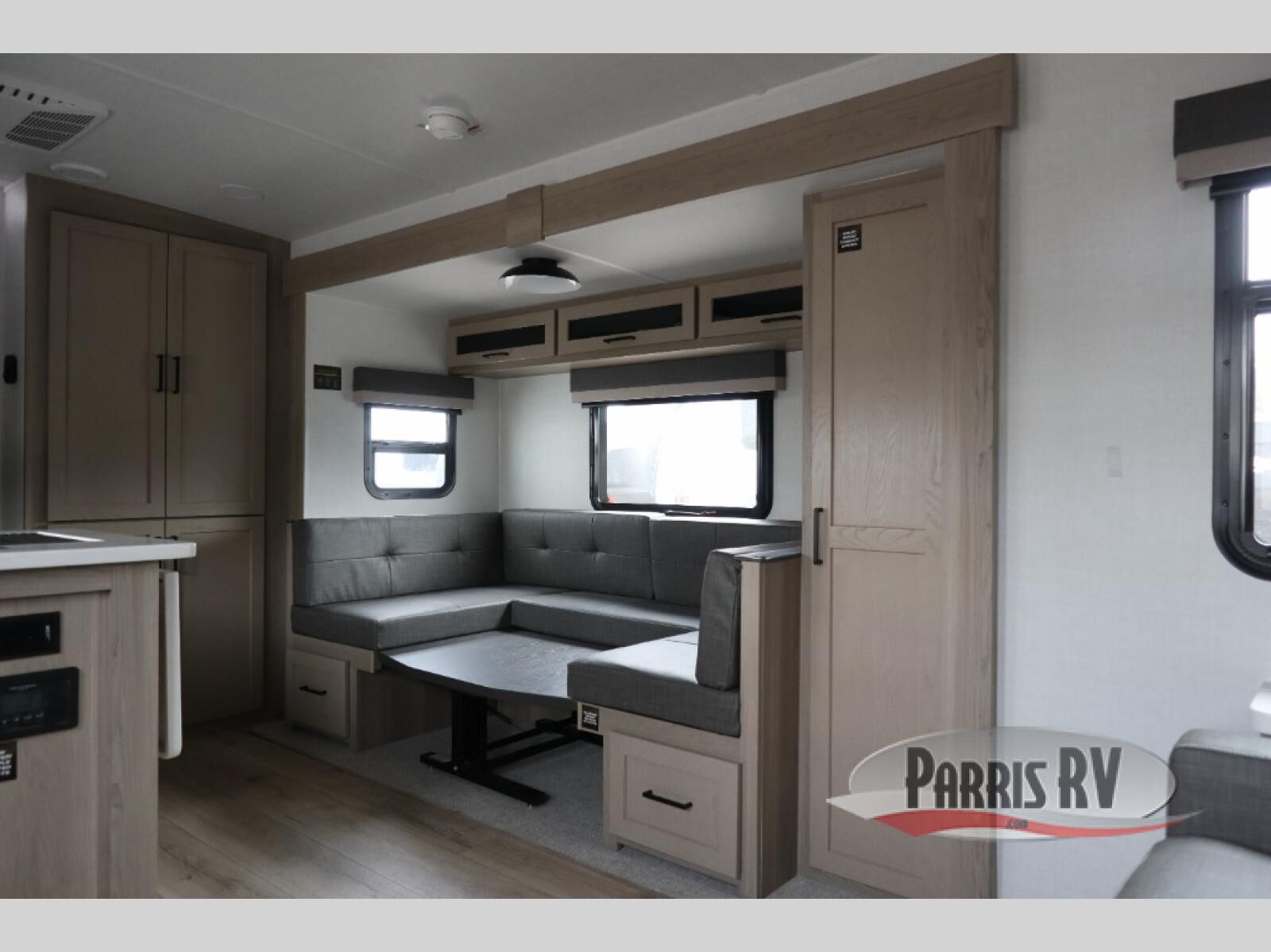 This versatile and cozy travel trailer will be perfect for weekend trips to the lake. Once you arrive at your campground, you can unload the water toys from the pass-thru storage, put out the 15' power awning, then make lunch on the exterior griddle. The U-shaped dinette slide inside will provide a place to dine, play board games, and let a guest or two sleep over, while you take the RV queen-size Murphy bed up front. In the morning, just fold up the bed to expose the 74" sofa! There is a three burner cooktop and microwave oven in the kitchen to make meals each day, along with a 12V refrigerator to keep leftovers fresh.