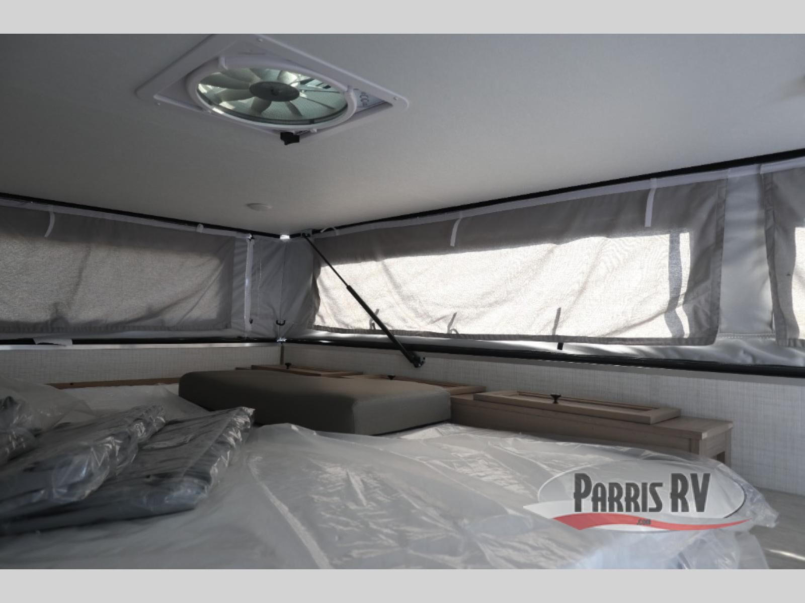 This soft side truck camper was built for 1/2 ton trucks with a 5' 6" to an 8' bed. Wake up feeling recharged after sleeping on the front queen bed with foot lockers and bedroom storage on either side of it. There is even a wardrobe for added storage. You can prepare your best meals with the two burner cooktop, and the refrigerator can hold perishables. Your meals can be enjoyed at the U-shaped seating area with a table and you can transform it into an extra sleeping space for a friend to join the fun!