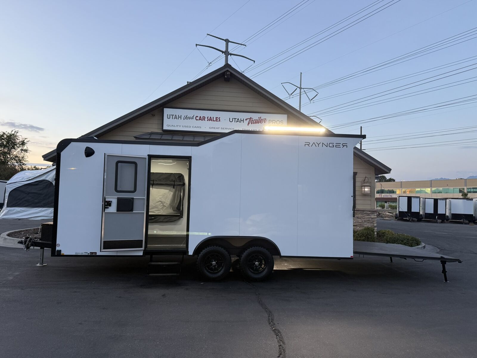 $352 A MONTH WITH ZERO DOWN WITH OUR SPECIAL LOCAL CREDIT UNION PARTNER!!! NO PRE-PAYMENT PENALTIES!!! 19 INCH GROUND CLEARANCE!!! OFF ROAD TIRES!!! NEW RAYNGER OFF ROAD TOY HAULER MODEL!!! GO WHERE OTHERS ONLY DREAM!!! .080 ALUMINUM EXTERIOR!!! SLEEPS 6 ADULTS!!! 2x DROP DOWN/POP OUT TENTS!!! (Need Summer or Winter Insulation? Check out these covers: https://gekkopopoutcovers.com/ ) DO YOU WANT A BATHROOM/SHOWER/KITHCHEN AREA? ASK SALES STAFF FOR PRICING!!! FULLY INSULATED!!! HEATING AND A/C READY/FRAMED/STUBBED/WIRED!!! STOW AND GO QUEEN BED!!! 84 Inch Rear Entry Height!!! 30 Amp Power pkg with Shoreline 30 Amp Cord!!! Power Fan Ventilated!!! Water Resistant Poly Bead Flooring!!! Hard Rubber Sealed interior Deck as well as exterior underbelly!!! EXTRA TOUGH!!! Patio Conversion Jacks!!! Tongue Mounted Generator Storage Box!!! 4 Foot LED Party Lights for nighttime fun!!! Marine Battery with Box. You HAVE to come see this BEAST in person, it will amaze you!!!
