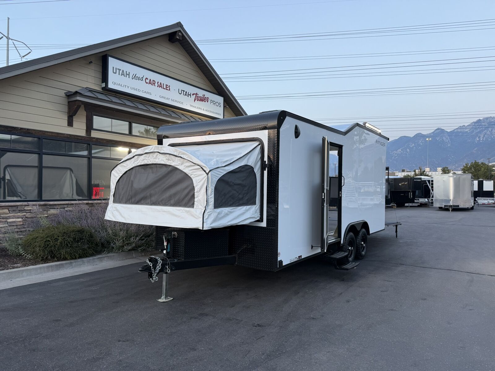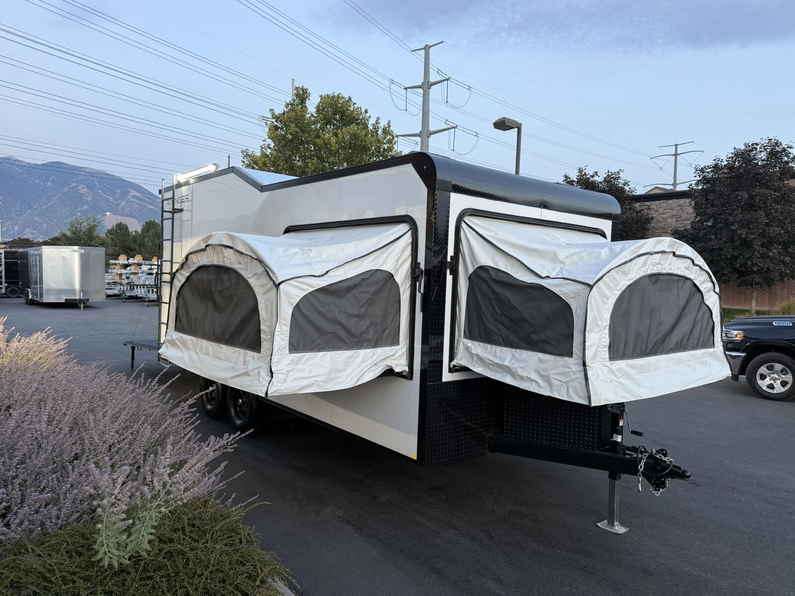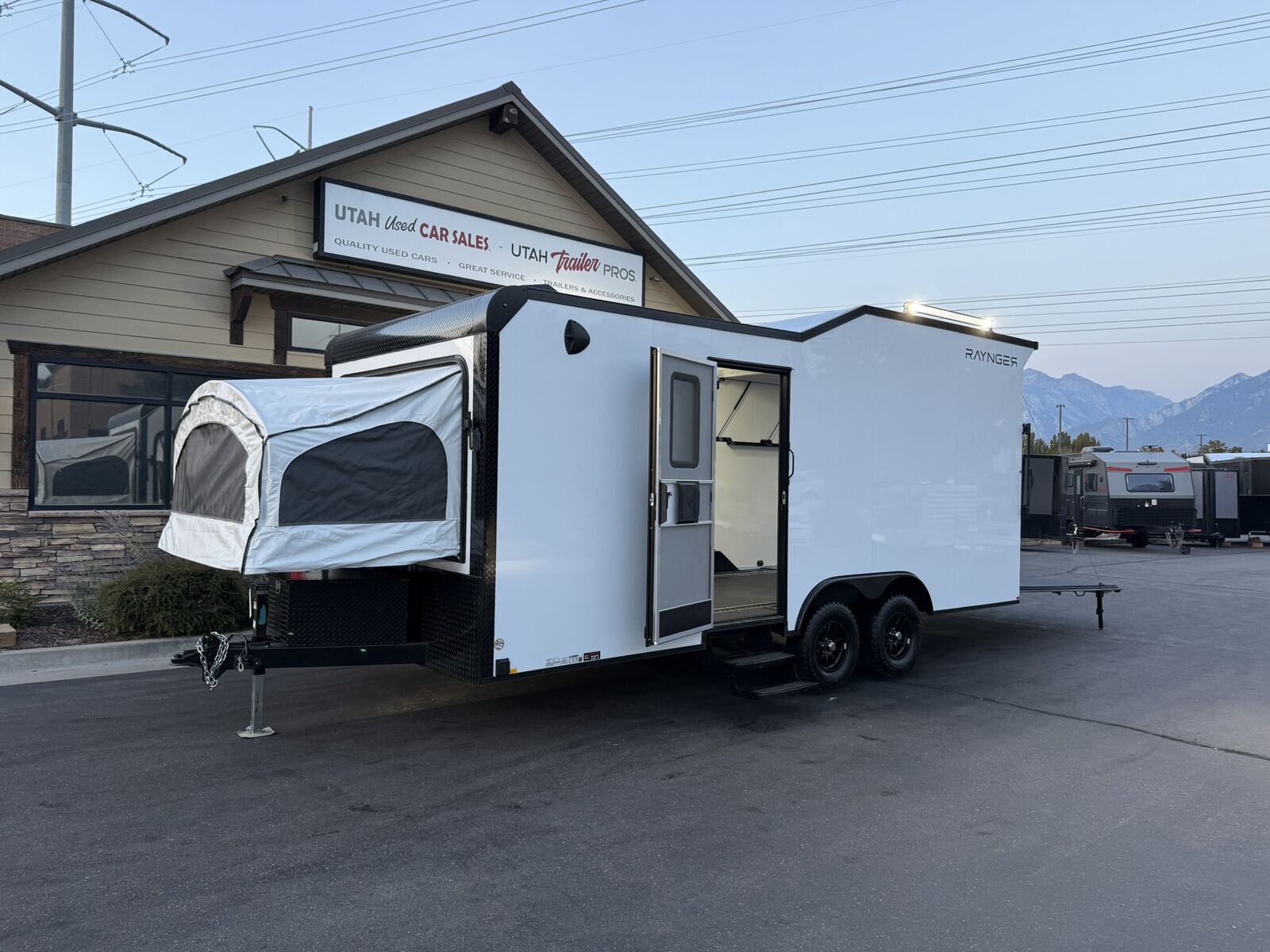 $352 A MONTH WITH ZERO DOWN WITH OUR SPECIAL LOCAL CREDIT UNION PARTNER!!! NO PRE-PAYMENT PENALTIES!!! 19 INCH GROUND CLEARANCE!!! OFF ROAD TIRES!!! NEW RAYNGER OFF ROAD TOY HAULER MODEL!!! GO WHERE OTHERS ONLY DREAM!!! .080 ALUMINUM EXTERIOR!!! SLEEPS 6 ADULTS!!! 2x DROP DOWN/POP OUT TENTS!!! (Need Summer or Winter Insulation? Check out these covers: https://gekkopopoutcovers.com/ ) DO YOU WANT A BATHROOM/SHOWER/KITHCHEN AREA? ASK SALES STAFF FOR PRICING!!! FULLY INSULATED!!! HEATING AND A/C READY/FRAMED/STUBBED/WIRED!!! STOW AND GO QUEEN BED!!! 84 Inch Rear Entry Height!!! 30 Amp Power pkg with Shoreline 30 Amp Cord!!! Power Fan Ventilated!!! Water Resistant Poly Bead Flooring!!! Hard Rubber Sealed interior Deck as well as exterior underbelly!!! EXTRA TOUGH!!! Patio Conversion Jacks!!! Tongue Mounted Generator Storage Box!!! 4 Foot LED Party Lights for nighttime fun!!! Marine Battery with Box. You HAVE to come see this BEAST in person, it will amaze you!!!