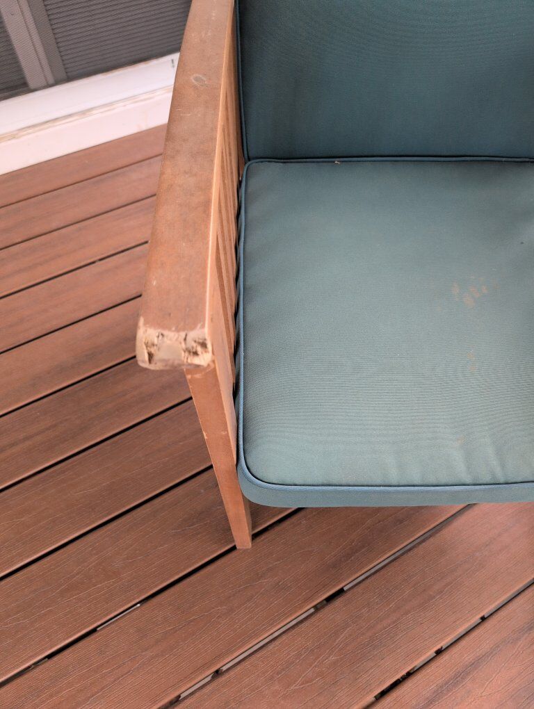 My puppy got to these I had on my covered deck and I know I won't fix them. cushion are in great condition