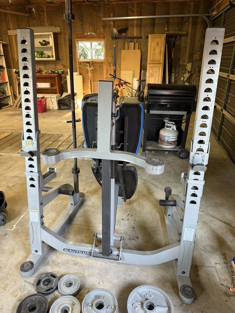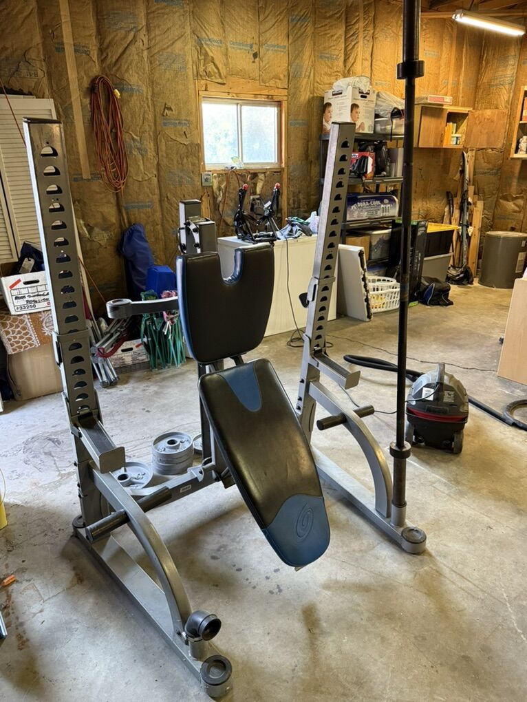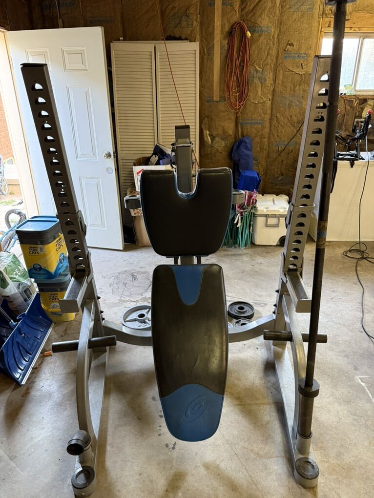 VenmoMulti-function weight rack. Can be used for bench press, incline bench press, squats, etc. The rack, barbell, and weights can be purchased all together or sold separately.