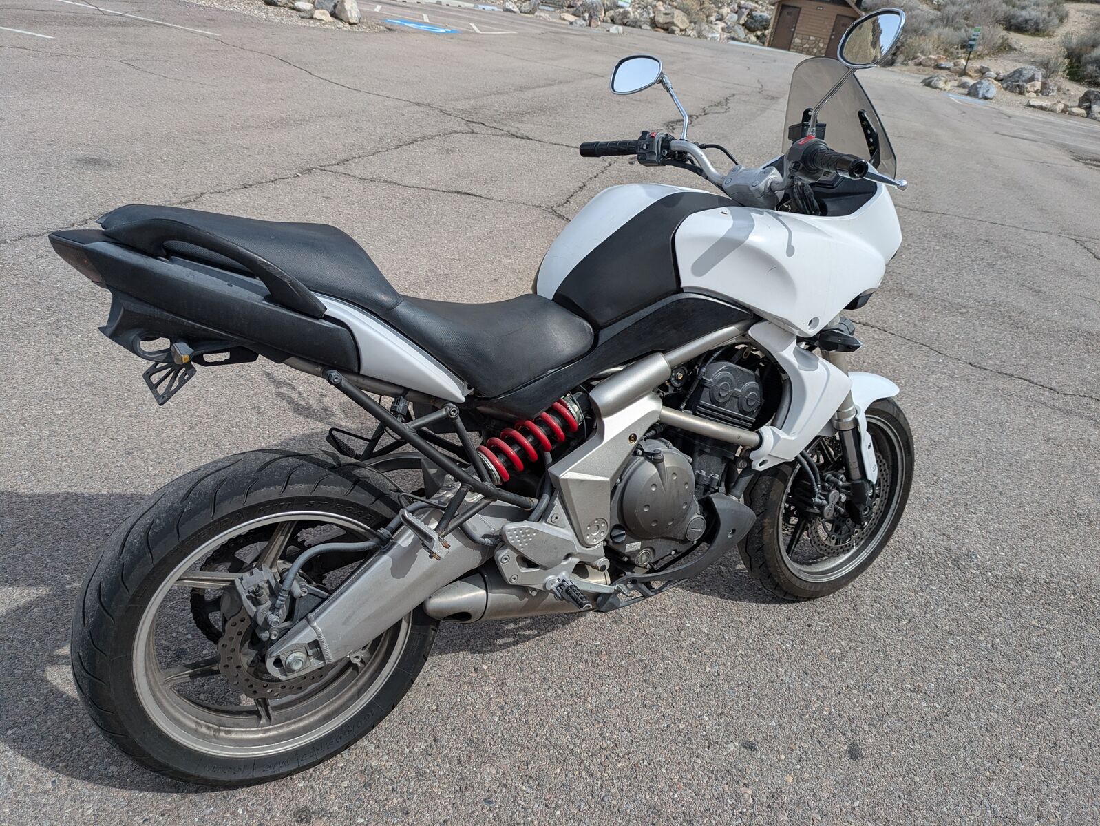 The rear tire was just replaced and she comes with underglow lighting that beams brilliantly off the white paint scheme. The Versys is one of my personal favorite bikes and you won't find a more fun ride out there. She's perfect for both off-roading or street riding. Has a rebuilt title due to cosmetic damage, but it's been professionally repaired and inspected, and she's good as new! Only 35k miles.