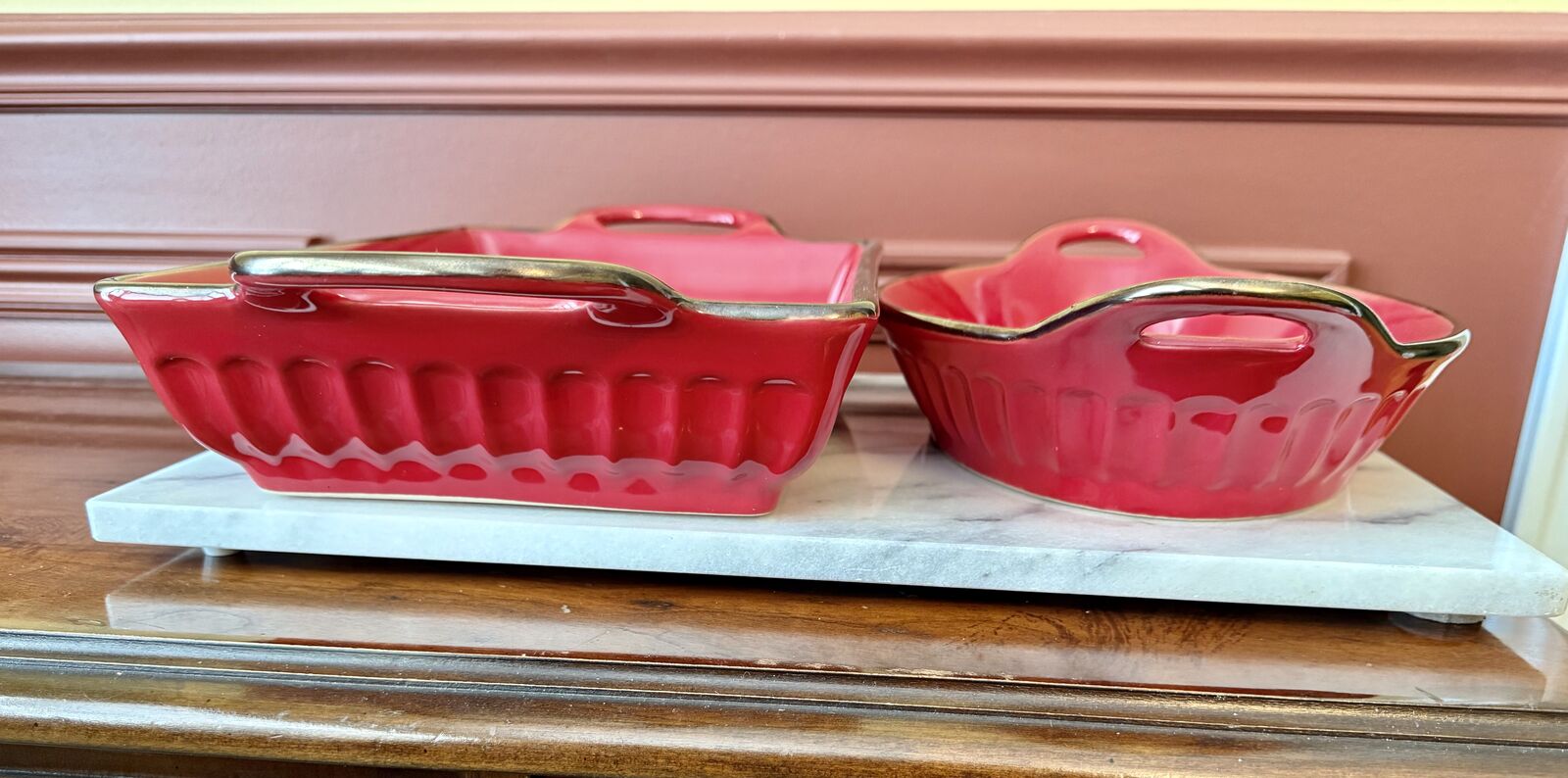 New - Beautiful Members Mark 2 Piece Fluted Bakeware Set - No Chips or Cracks Measurements in PIX.