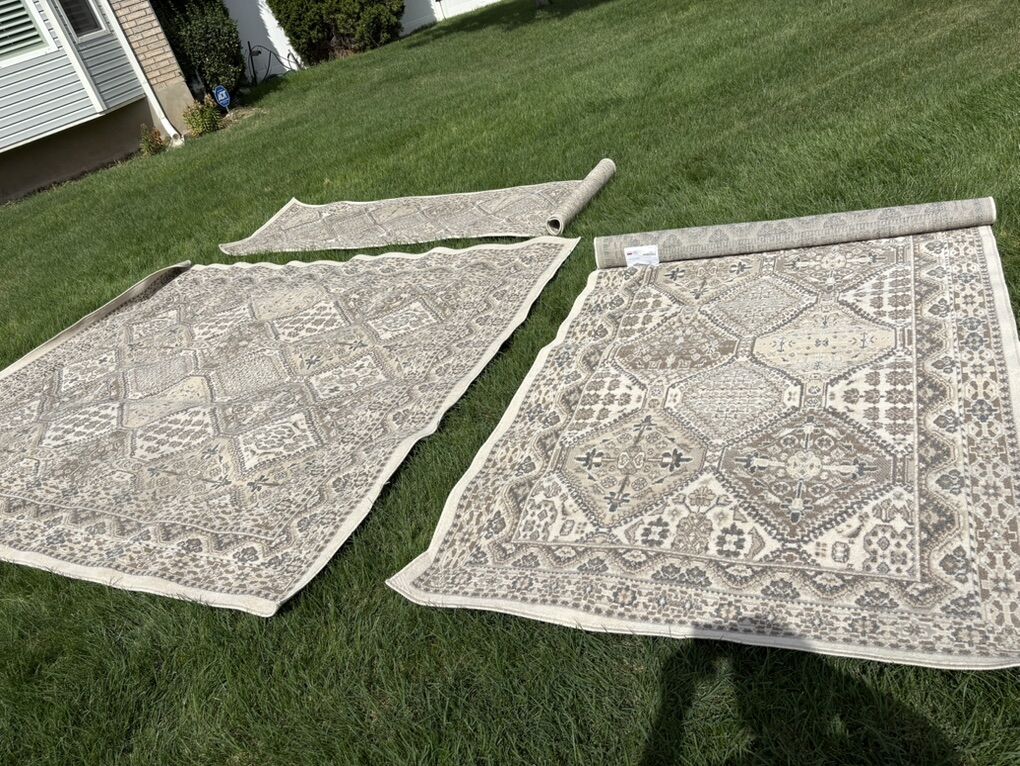 CashAppArea rugs for sale have the very main big one and that’s a 12 x 12 and then the 3‘ x 12‘ runner has another one next to it that are all out the same design the three of them and then you have 4‘ x 8‘ rug For those three together asking 100 or all or make a offer if you want them separate the red black square one has 8‘ x 4‘ and 8‘ x 4‘ with the checkers on and then three small ones altogether 15 bucks for the three or make me an offeror for all of them together 100 or make me an offer will sell them separately just make an offer on which one you want, but it really needs to sell these ASAP altogether for all these rugs spent about $975 like I said they were hardly used for only a couple months. They’re still brand new. I will sell all rugs for 100 bucks if you come today.