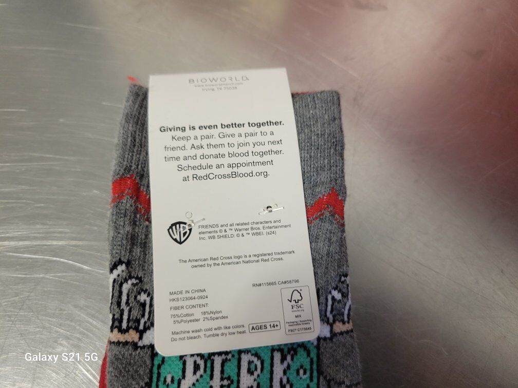 FRIENDS Sock Collab with Red Cross (2014) Adult Size. 2 Socks total.
