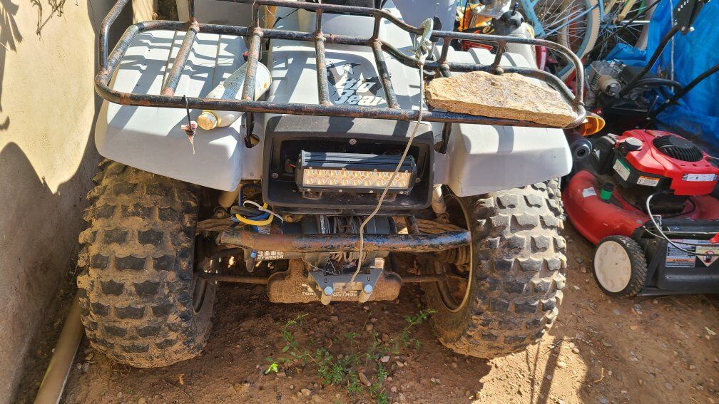 up for sale of 1989 Yamaha Big Bear that mainly needs carburetor work and Brake work. and will most likely need a new battery and gas changed. being sold as is not currently running might be able to get it started with the jump and starter fluid. being sold as is have title in hand 1300 or best offer might be willing to do partial cash partial trade for video games video game consoles metal detectors or silver coins