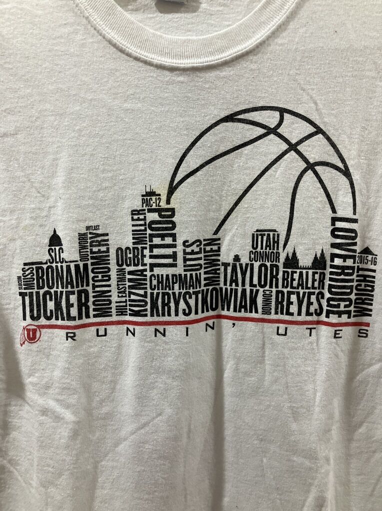 Vintage White 2015-2016 University of Utah Basketball Runnin Utes Game Day T-Shirt with Players name on front and Game Day on back of T Shirt Good Condition Cash Only Please Size XL