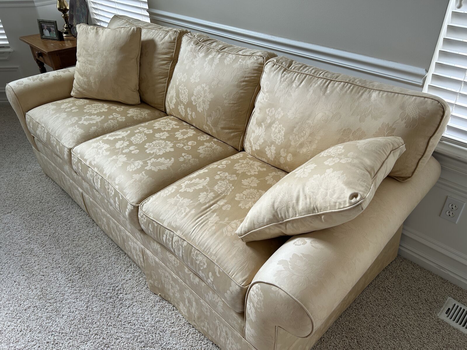 Made by Ethan Allen, 3 Cushion Couch, 84” length. Good Condtion. Excellent purchase for $60 or OBO. Lots of good life left in this sofa.