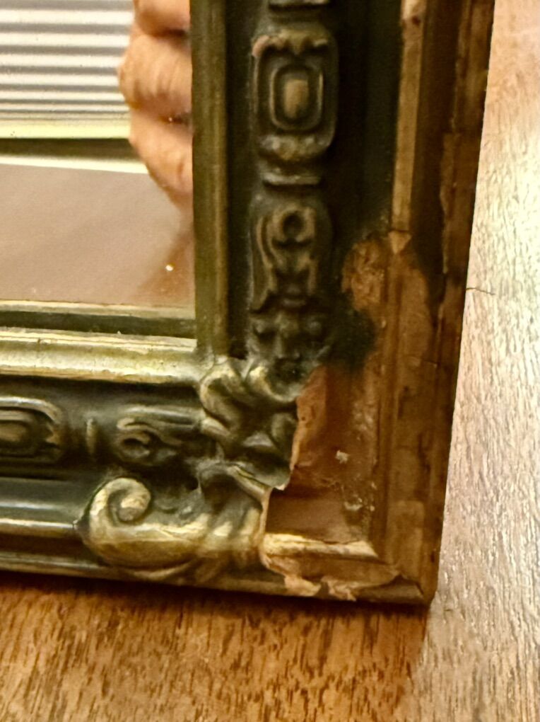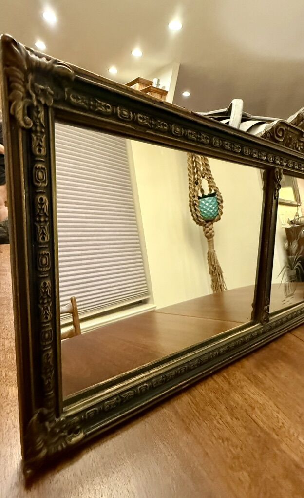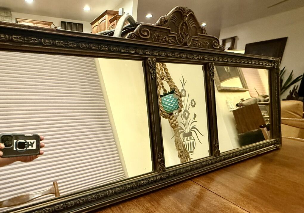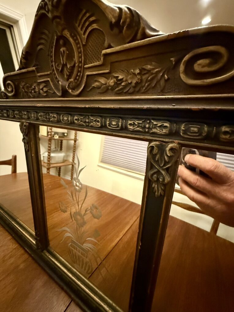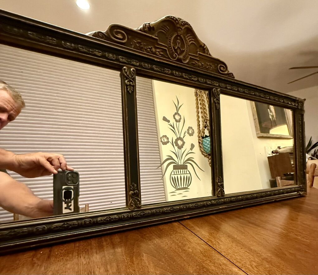 Venmo1930’s etched 3 panel piano mirror. Has slight damage in bottom right corner showing pictures .