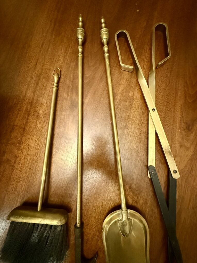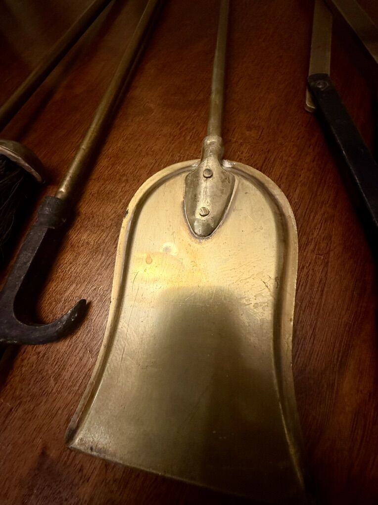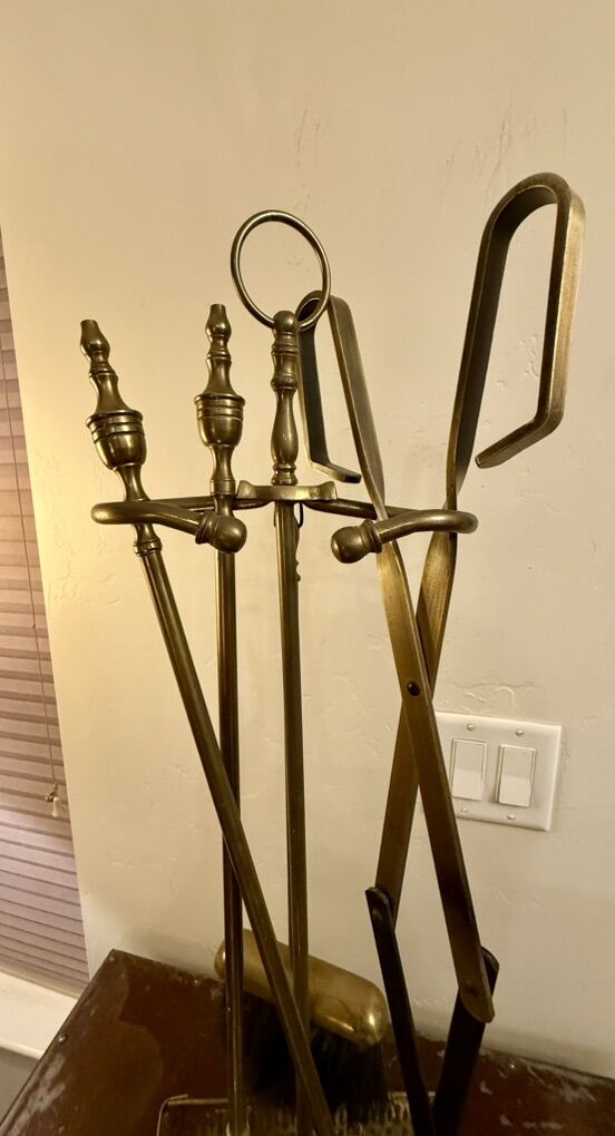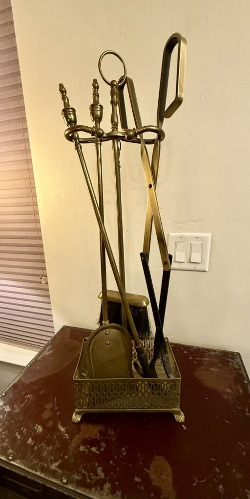 VenmoAbsolutely incredible vintage brass fireplace set. The stand on this piece is amazing and all tools are beautiful and perfect for display or use .