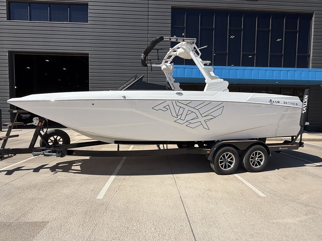 MORE PICTURES COMING SOON. 2023 ATX Boats 24 Type-sLARGE AND IN CHARGE.Large, bold, capable, and comfortable, the ATX 24 Type-S turns heads, gives you more value, and unleashes some serious swells.When you’re ready to catch the perfect wave, just push GO and you’ll get barrels right out of the box. Versatility and simplicity are built right into its core thanks to the patented Convex V Hull, TAPS 3T, and over 3,500 lbs of ballast. 3T meaning 3 TONS of pressure, and the software behind the machine will dial in your boat for you. Say goodbye to complicated instructions, confusing setups, and moving people around. Your day will be epic and easy.Sit back and soak up the sun with the built-in transom seating, standard reversible seats, and drop-in cockpit, and sunpad seatbacks—all of which are unprecedented in the value segment.Features may include:TYPE-E POWERED TOWERThe first and only electric tower in its class, the Type-E Tower has simplicity at its core, giving you the most convenient and adaptable tower on the water.CONVEX V HULLThe patented Convex V Hull allows ATX to produce a wake superior to all other inboards.TAPS 3TJust push ‘GO’ and TAPS 3T will show you a new level of surf and wake performance.ATXPERIENCE CONTROL CENTERThe 7" touch screen and control center give you full control over your boat and your day.WET SOUNDS AUDIO SYSTEMSTurn up the tunes and let the good times roll with our premium Wet Sounds audio system.RAPTOR SERIES BY INDMARThe perfect balance of torque and a smooth, relaxed ride no matter how hard you push it.