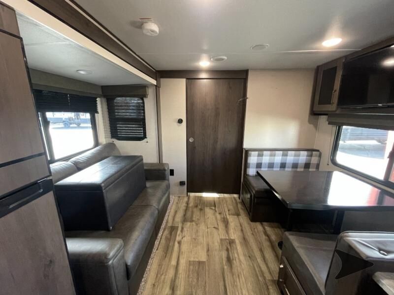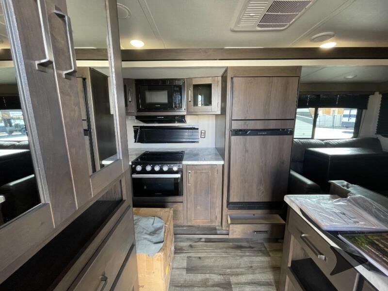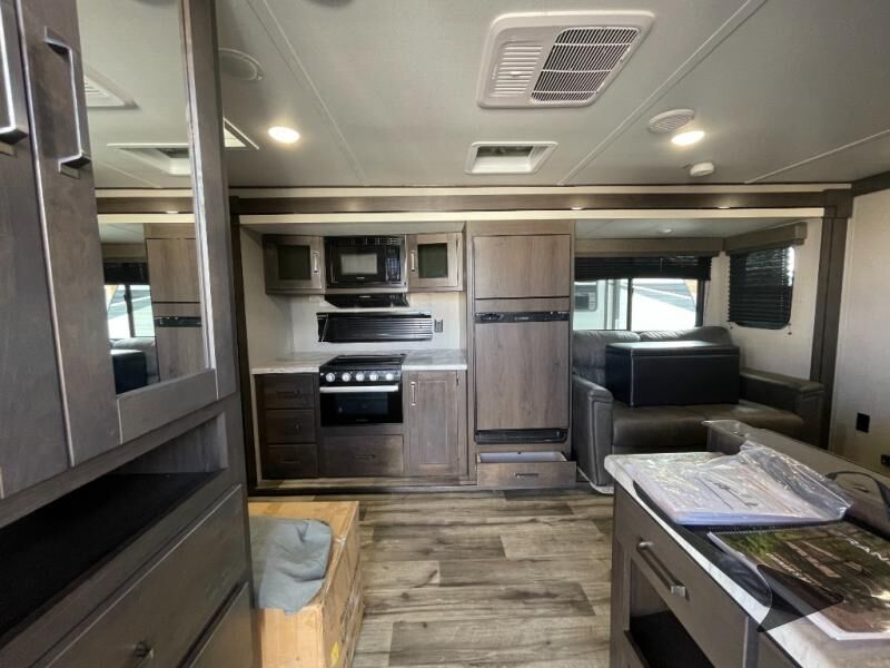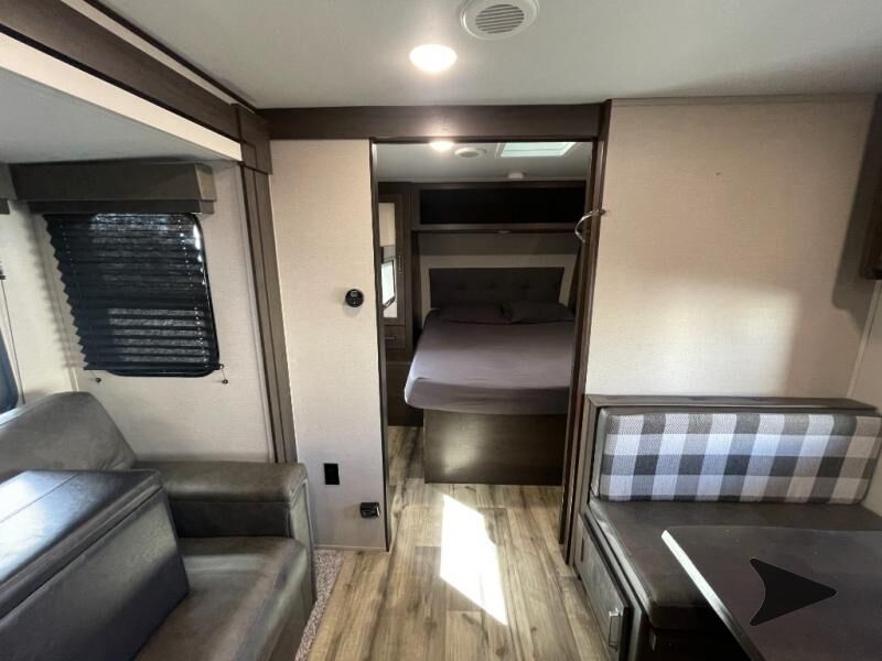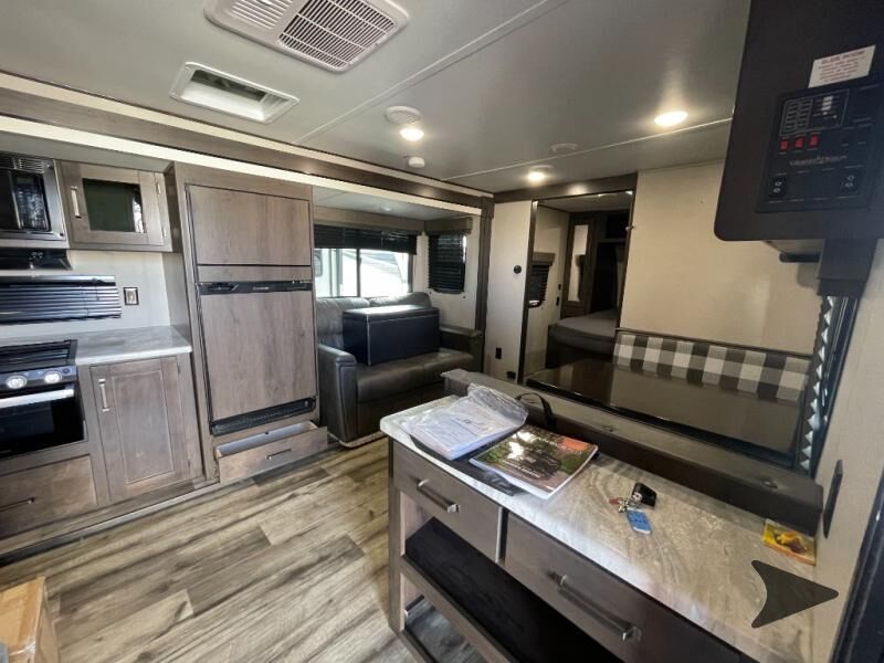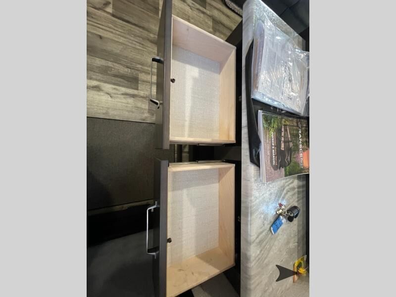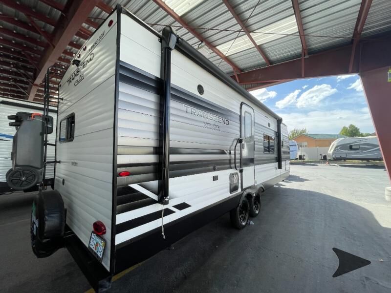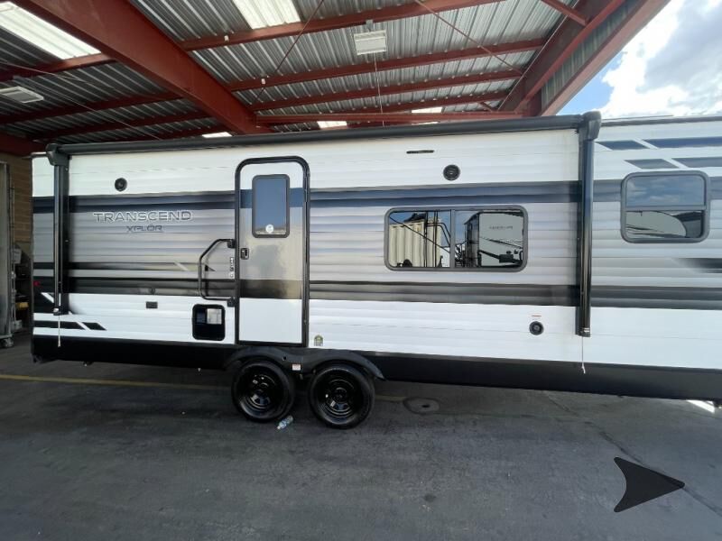 Grand Design Transcend Xplor travel trailer 240ML highlights: 17' Power Awning Large Slide Out Plenty of Counter Space Booth Dinette Queen Bed Full Bath Relaxing weekends to the lake just got sweeter in this spacious travel trailer. Prepare lunch on the three-burner cooktop, and you can enjoy it at the booth dinette. There is also a 60" tri-fold sofa, or you can choose the optional theater seating in place of the sofa if you don't need the extra sleeping space. This model includes plenty of storage space, including a pantry/wardrobe just as you enter the unit, overhead compartments, and even a pet drawer for food and water! The customer-focused, quality-built Transcend Xplor travel trailers by Grand Design are your ticket to fun and adventure. The upgraded Strongwall metal exterior will hold up through the years, and the heated and enclosed underbelly means you can camp in all seasons.You will appreciate the power tongue jack when it comes time to set up, as well as the all-in-one utility center and the detachable power cord with an LED light. These models include many outlets throughout, USB ports to charge your gadgets, and an AM/FM/Bluetooth stereo with exterior speakers to keep you entertained. The interior of the Transcend Xplor will have you feeling right at home with upgraded residential furniture, a large, solid bedroom door, and residential countertops, and the list goes on!