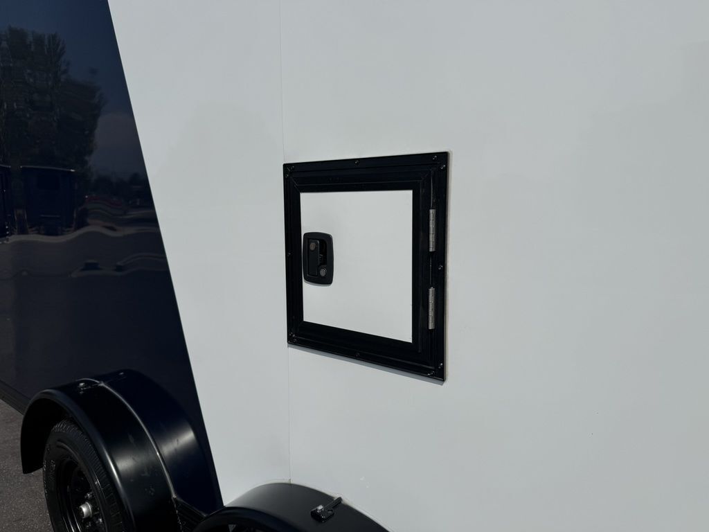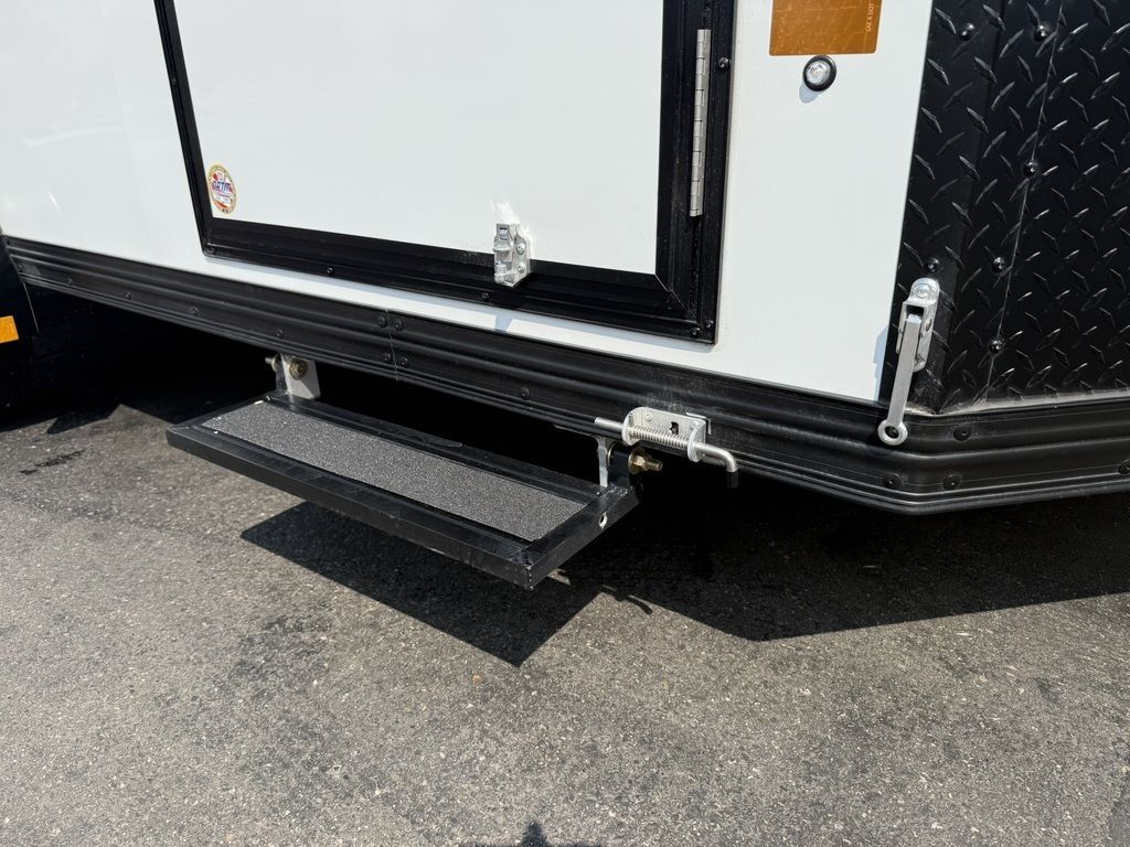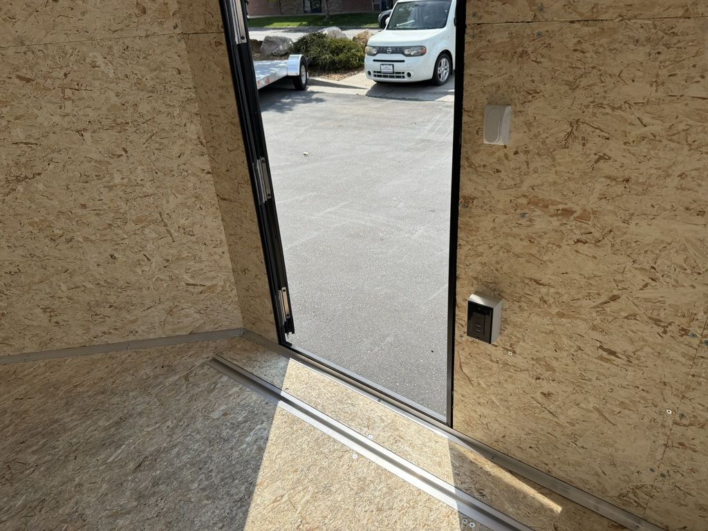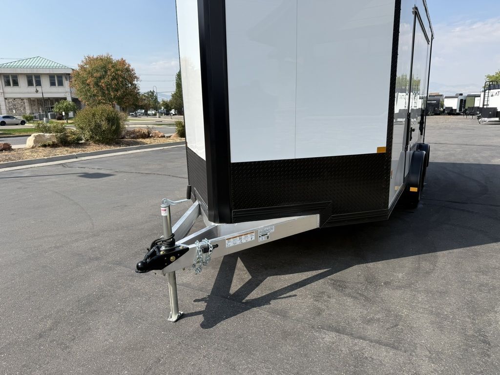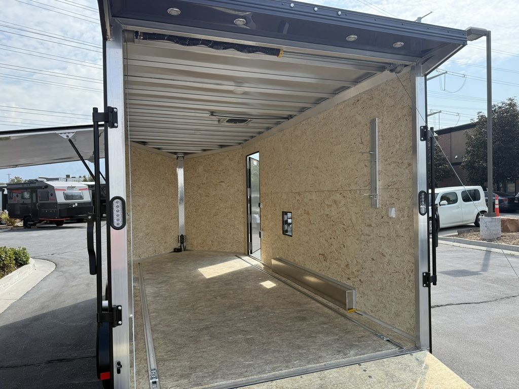 24" Stone Guard 2000# Center Jack Axles: 2-3K Torsion Braked Axles NEW Spread Axle Design w/ Individual Fenders GVWR: 7000# 2-5/16" A-Frame Coupler NEW Tires: 15" Gloss Black Mod Steel Rims (205/75R15) NEW Cargo Slide Track Package with (2) Full-Length Rows and (4) Adjustable D-Rings NEW Rear Ramp w/Spring Assist, Starter Flap & Aluminum Hardware NEW 32"x78" Side Access Door w/ Paddle Handle & Piano Hinge NEW Elite Escape Door Roof Vent Exterior LED Lighting (3) Interior LED Dome Lights w/Switch 3/8" Water Resistant Walls