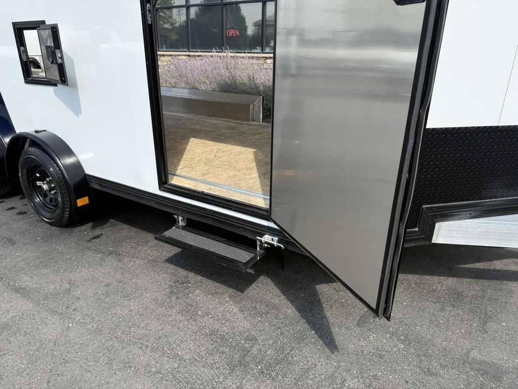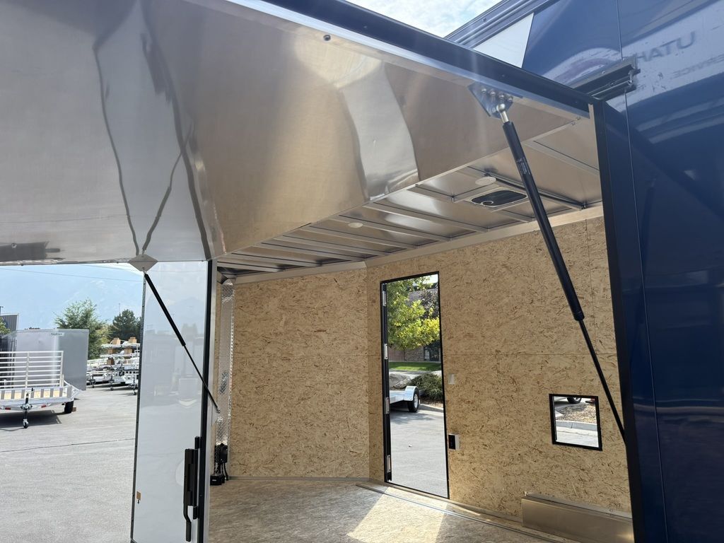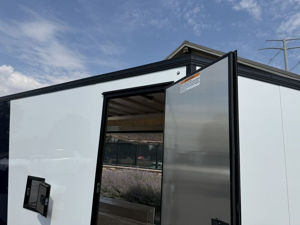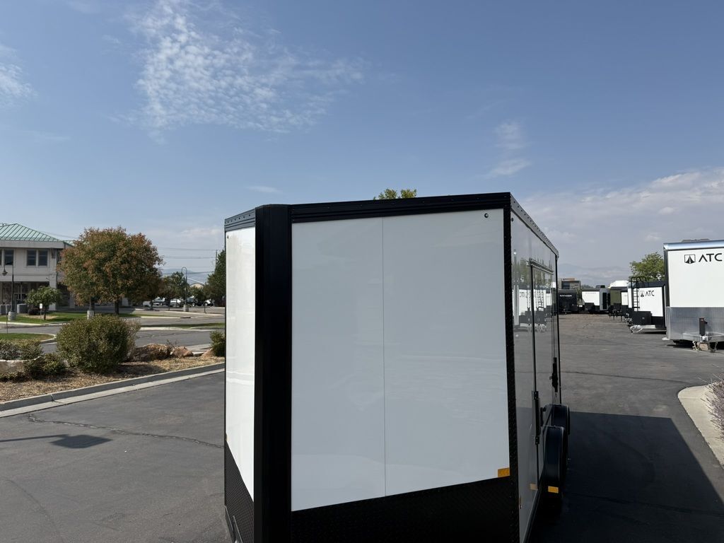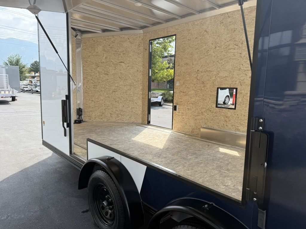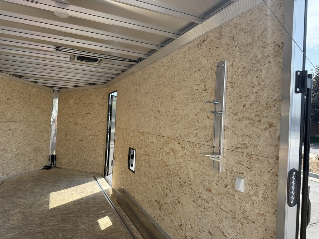 24" Stone Guard 2000# Center Jack Axles: 2-3K Torsion Braked Axles NEW Spread Axle Design w/ Individual Fenders GVWR: 7000# 2-5/16" A-Frame Coupler NEW Tires: 15" Gloss Black Mod Steel Rims (205/75R15) NEW Cargo Slide Track Package with (2) Full-Length Rows and (4) Adjustable D-Rings NEW Rear Ramp w/Spring Assist, Starter Flap & Aluminum Hardware NEW 32"x78" Side Access Door w/ Paddle Handle & Piano Hinge NEW Elite Escape Door Roof Vent Exterior LED Lighting (3) Interior LED Dome Lights w/Switch 3/8" Water Resistant Walls