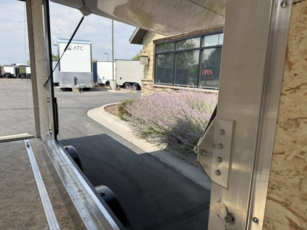 - Stone Guard - Locking Bars - Hinges - Grab Handles - Coupler - Exterior Trim Upgrade to 22.5 Degree Down Axle(s) (Torsion Only) 12" Extended Tongue (For 3k Tandem Axle Enclosed with 2"x5" Tongue) Includes Center Beam Upgrade Upgrade to Keyed Locking Hasps for Ramp Door (Set) 14" x 14" Fuel Door w/Paddle Handle Specify Location: CENTERED ON CURBSIDE 12v USB-C and USB-A Dual Recessed Receptacle