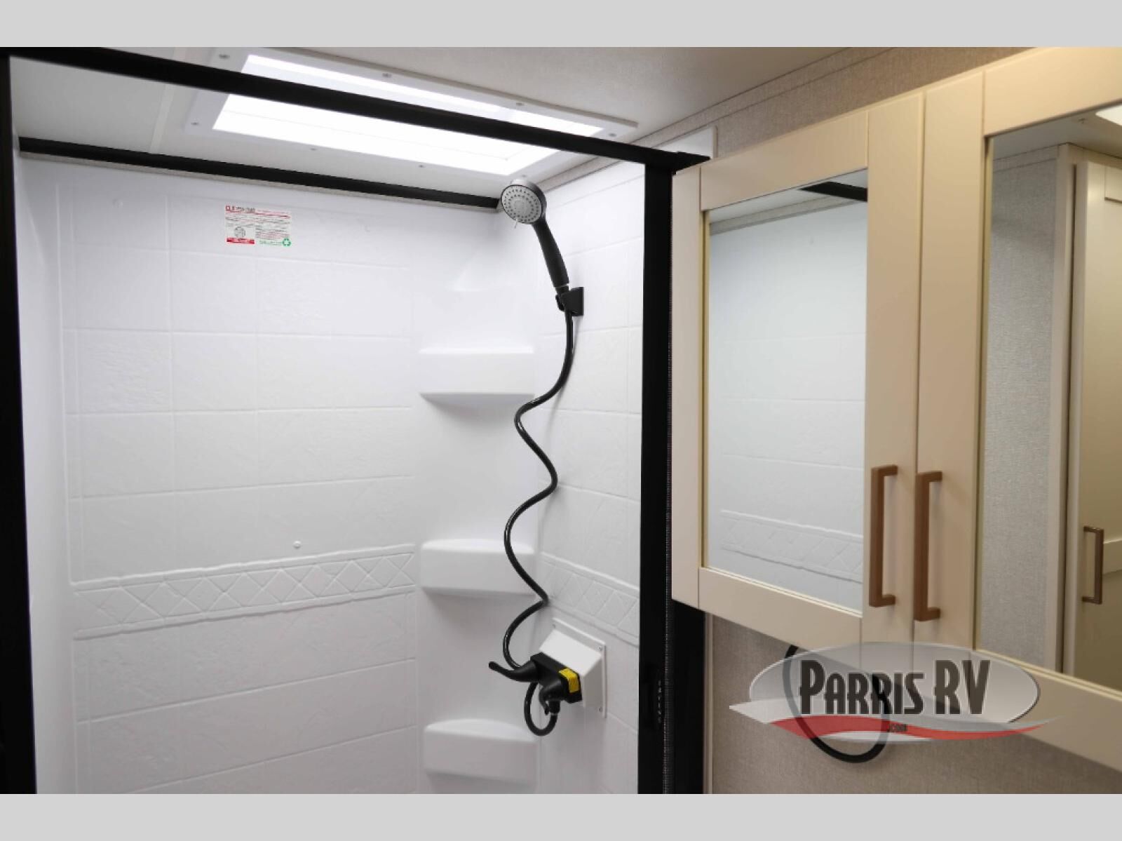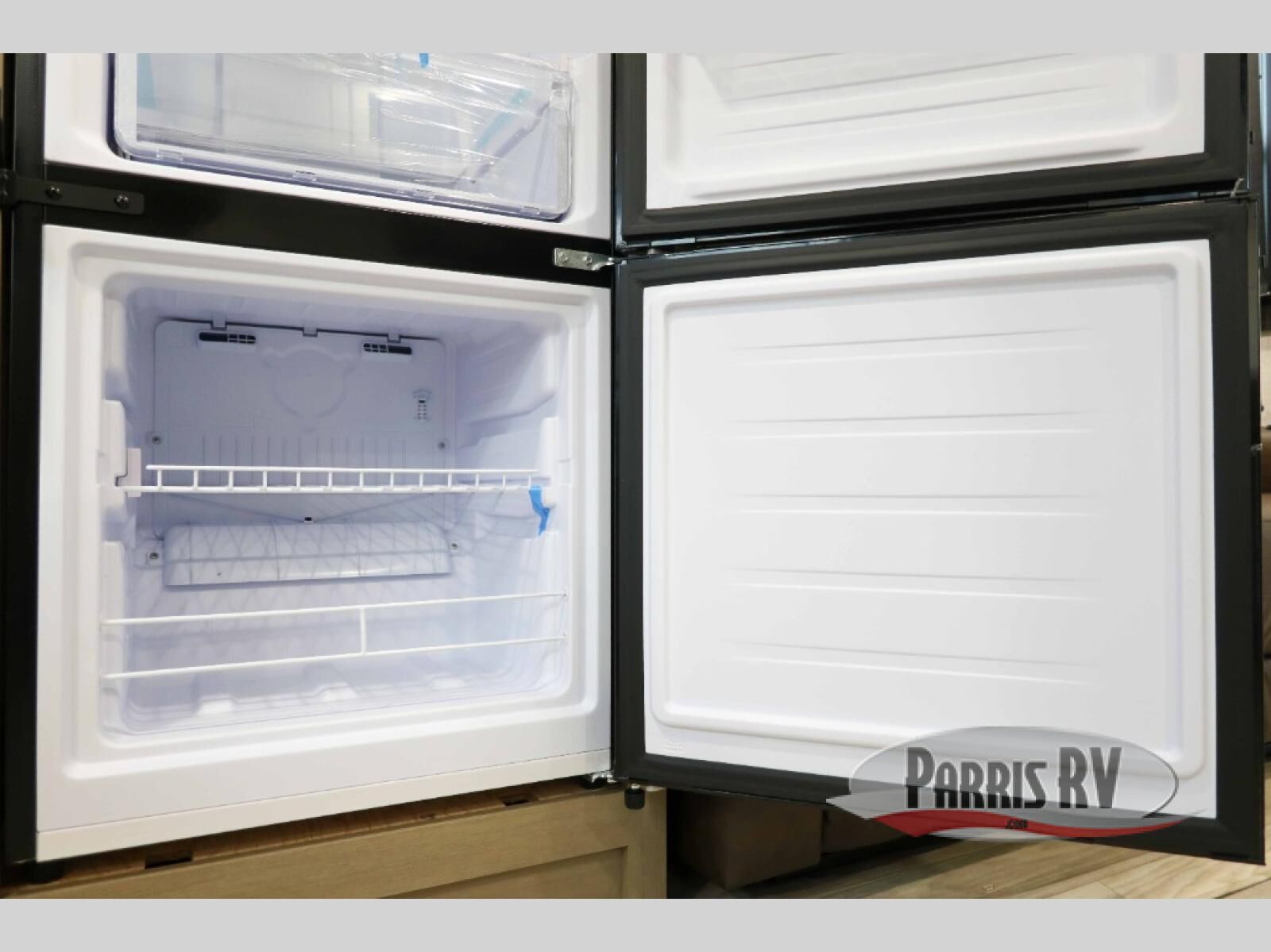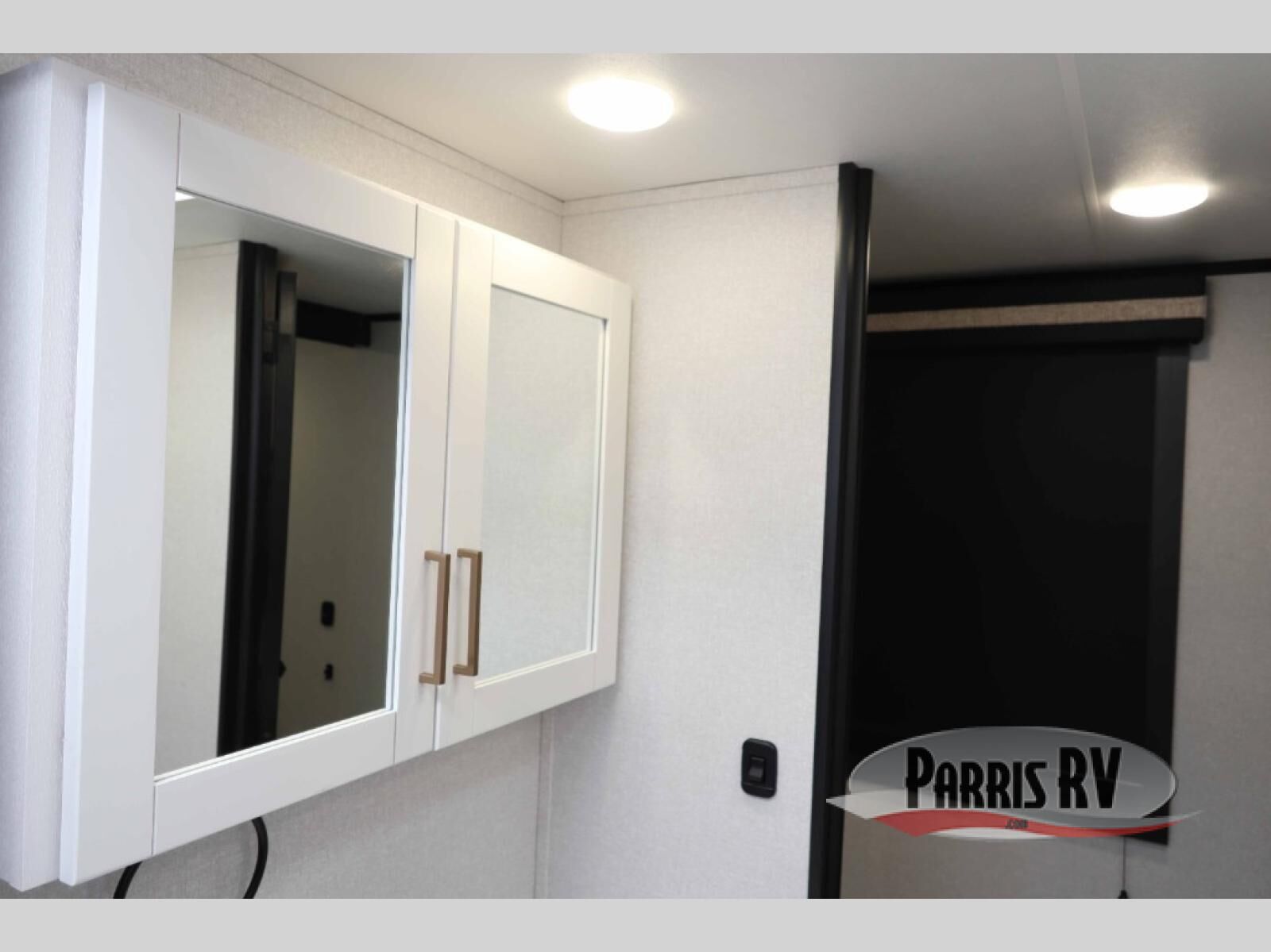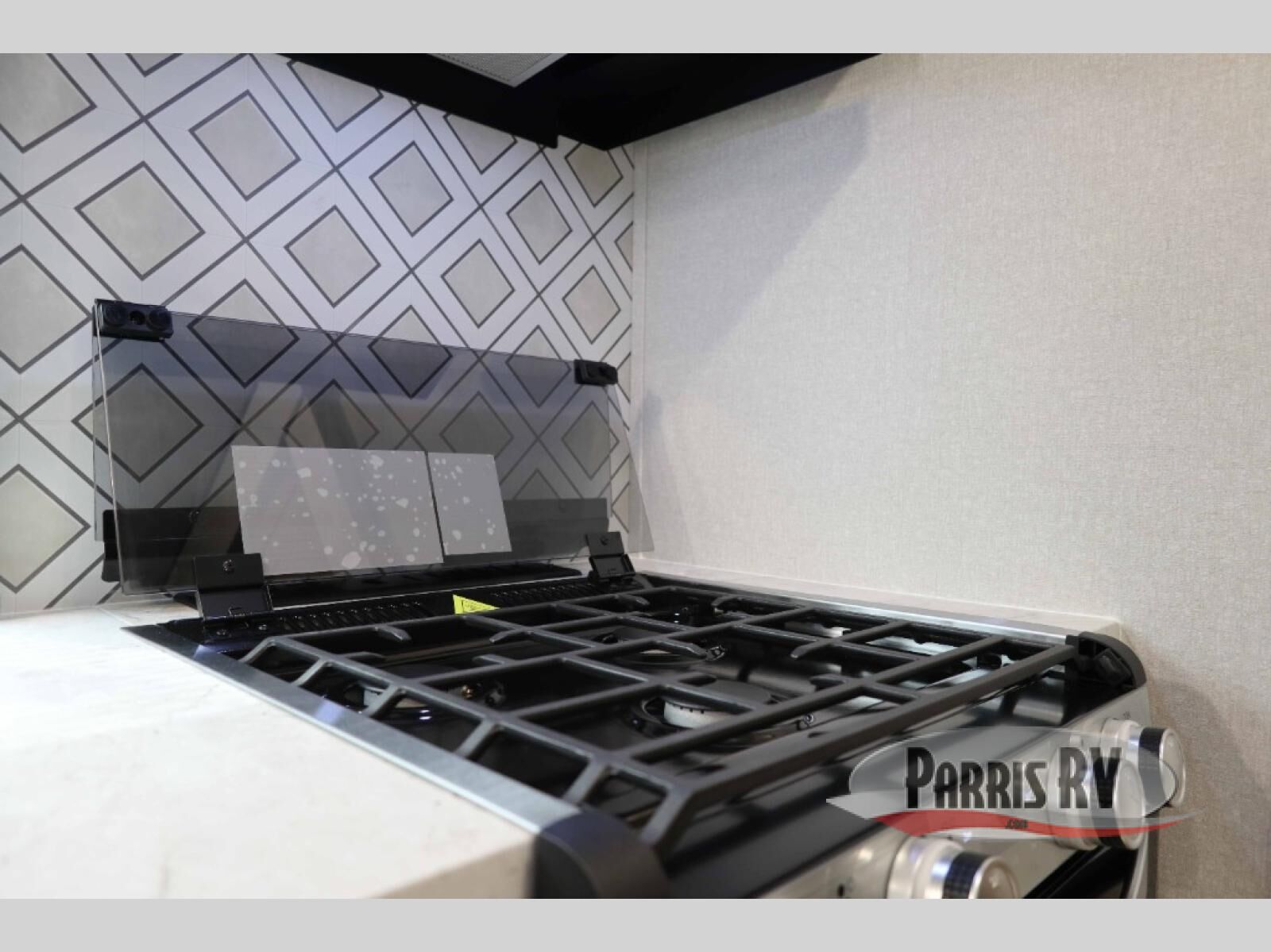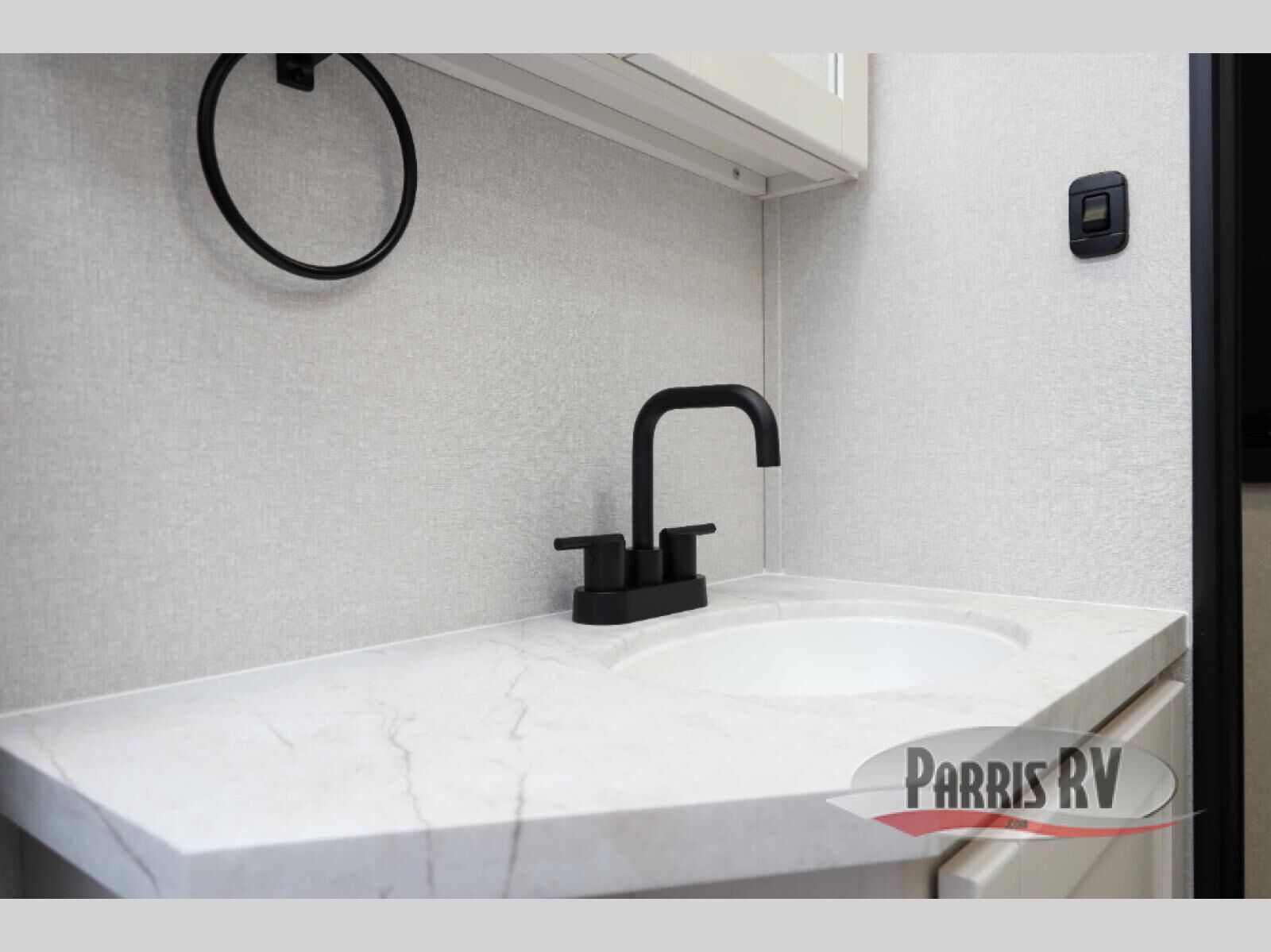At the front of this travel trailer, you'll find a private bedroom featuring a spacious 60" x 80" queen bed, complete with pull-out nightstands and wardrobes on each side for convenient storage of clothes and essentials. One of the two entry doors is located here, providing added privacy and easy access. Moving down the hall, the full bathroom offers a 30" x 36" shower, a porcelain foot-flush toilet, and a linen cabinet to keep towels and hygiene items neatly organized. In the main living area, you can enjoy meals or game nights at the 38" x 68" booth dinette, while the 60" theater seat in the slide-out provides a cozy spot to relax. At the rear, the kitchen spans the full width of the trailer and includes a stainless-steel single-basin sink with a high-rise pullout faucet and butcher block cutting board, a three-burner range, and generous seamless countertops. Also, in the slide-out are a pantry and an 11-cu. ft. refrigerator, giving you plenty of room to store food, snacks, and leftovers for the whole trip. The second entry door is located in between the kitchen and dinette for your convenience.