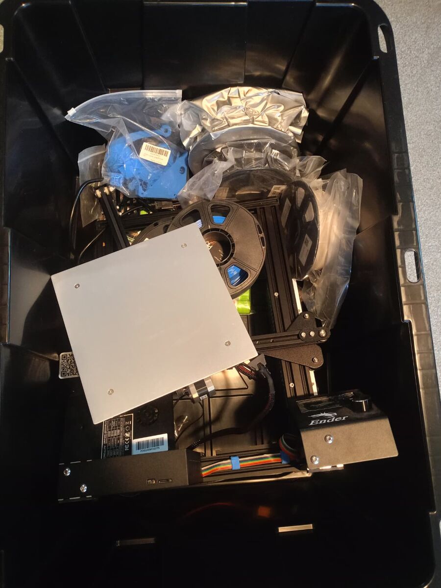 Selling my Ender 3 3D printer. The machine works, it just needs to be put back together. Comes with multiple filament spools and extra parts as pictured.
