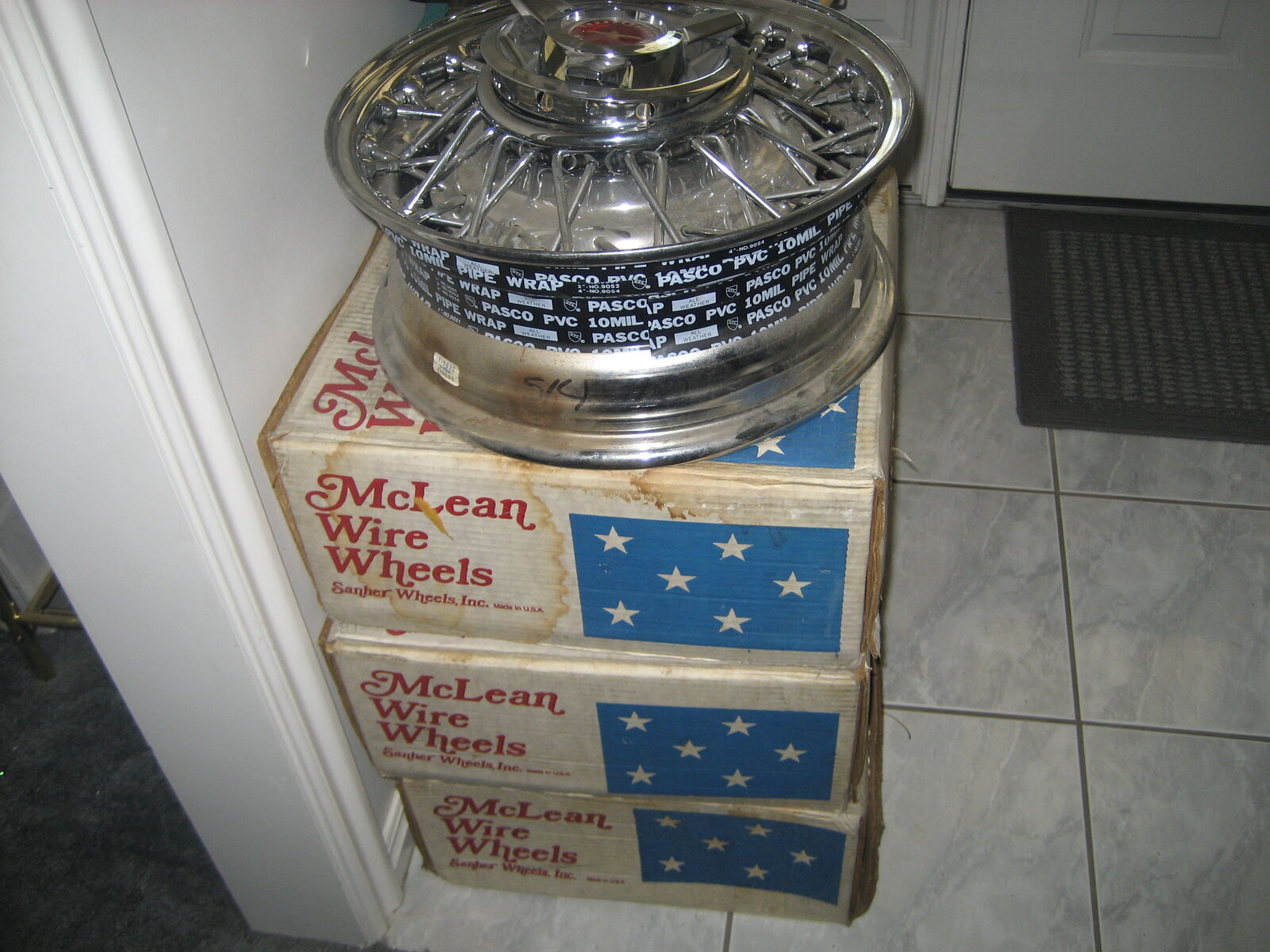 One set of Ford Thunderbird NOS McLean 14" x 6" Wire Wheels. These have a dual bolt pattern. Will fit both 4 1/2 & 4 3/4 bolt patterns.