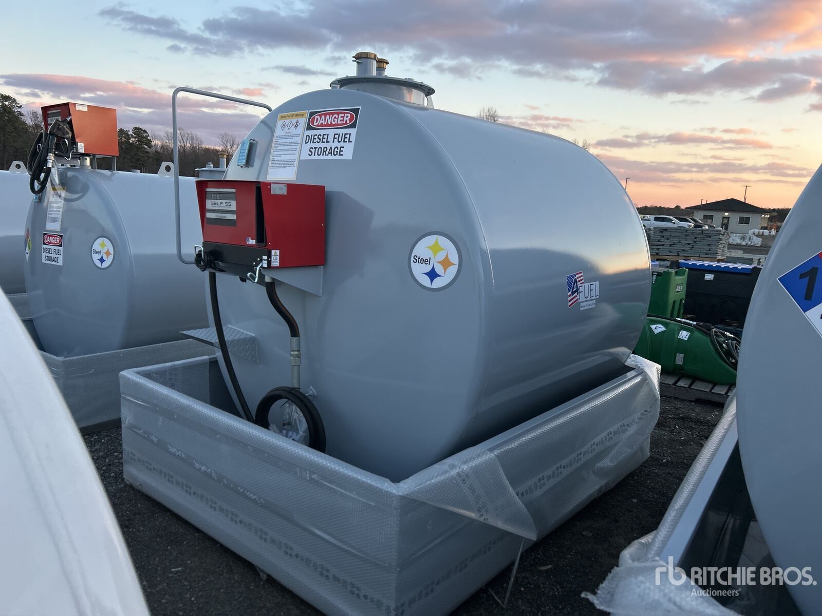 2024 4-Fuel.com 1100 gallon Skid Mounted Diesel Fuel Tank Unused with 120 V Transfer Pump, 13 ft Hose, Fuel Meter, Automatic Shut-Off Nozzle, Spill Containment