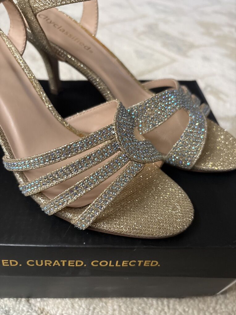 VenmoCity classified dress shoes. Gold, diamond looking shoes. Runs big 7.5